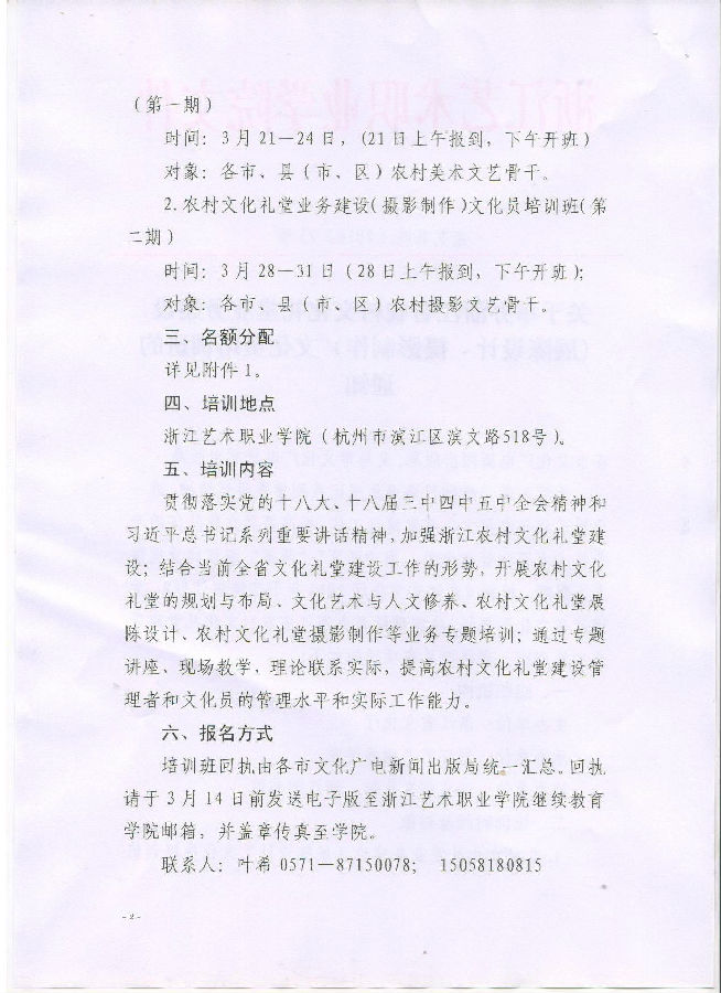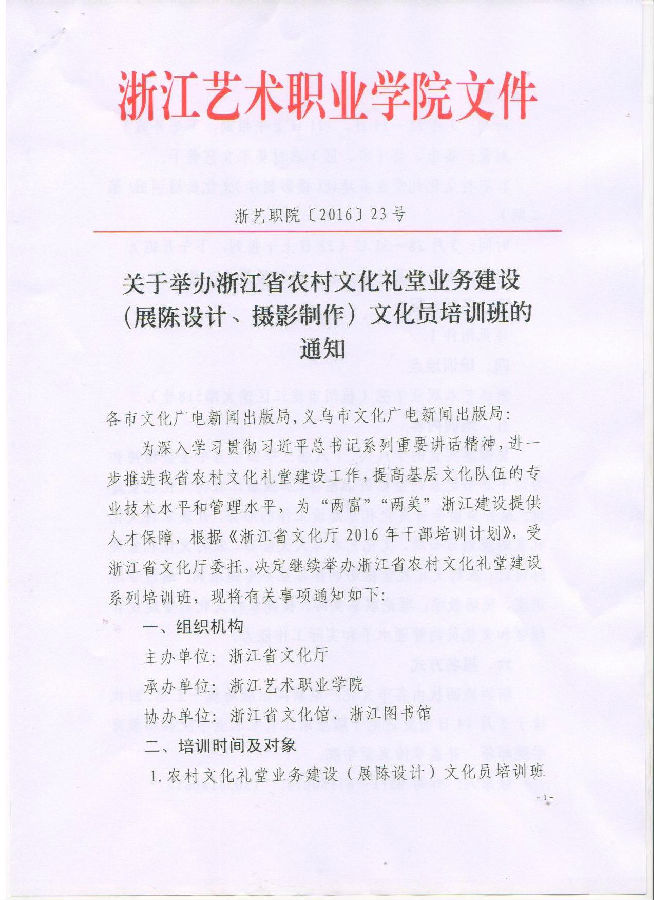 关于举办浙江省农村文化礼堂业务建设 (展陈设计、摄影制作)文化员培训班的 通知