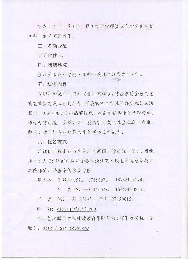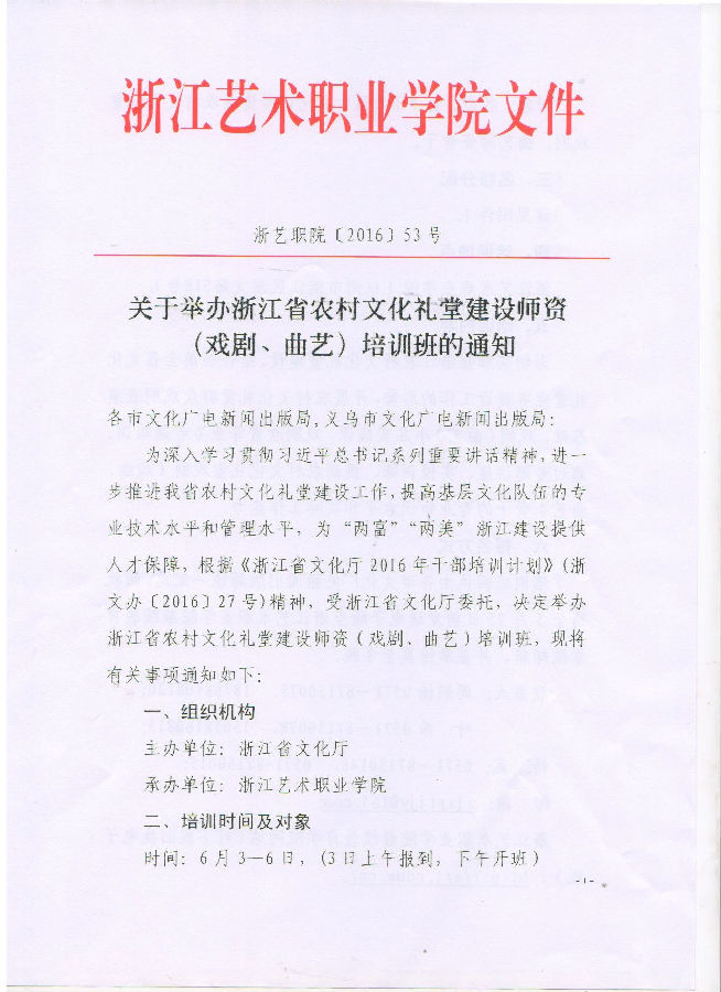 关于举办浙江省农村文化礼堂建设师资(戏剧、曲艺)培训班的通知
