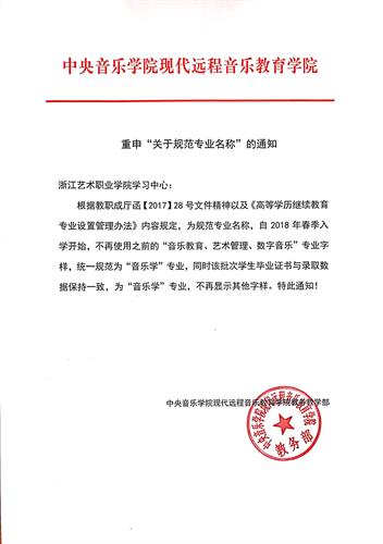 年春季入学开始,毕业证书不再使用之前的“音乐教育、艺术管理”专业字样,统一规范为“音乐学”专业,不再显示其他字样。