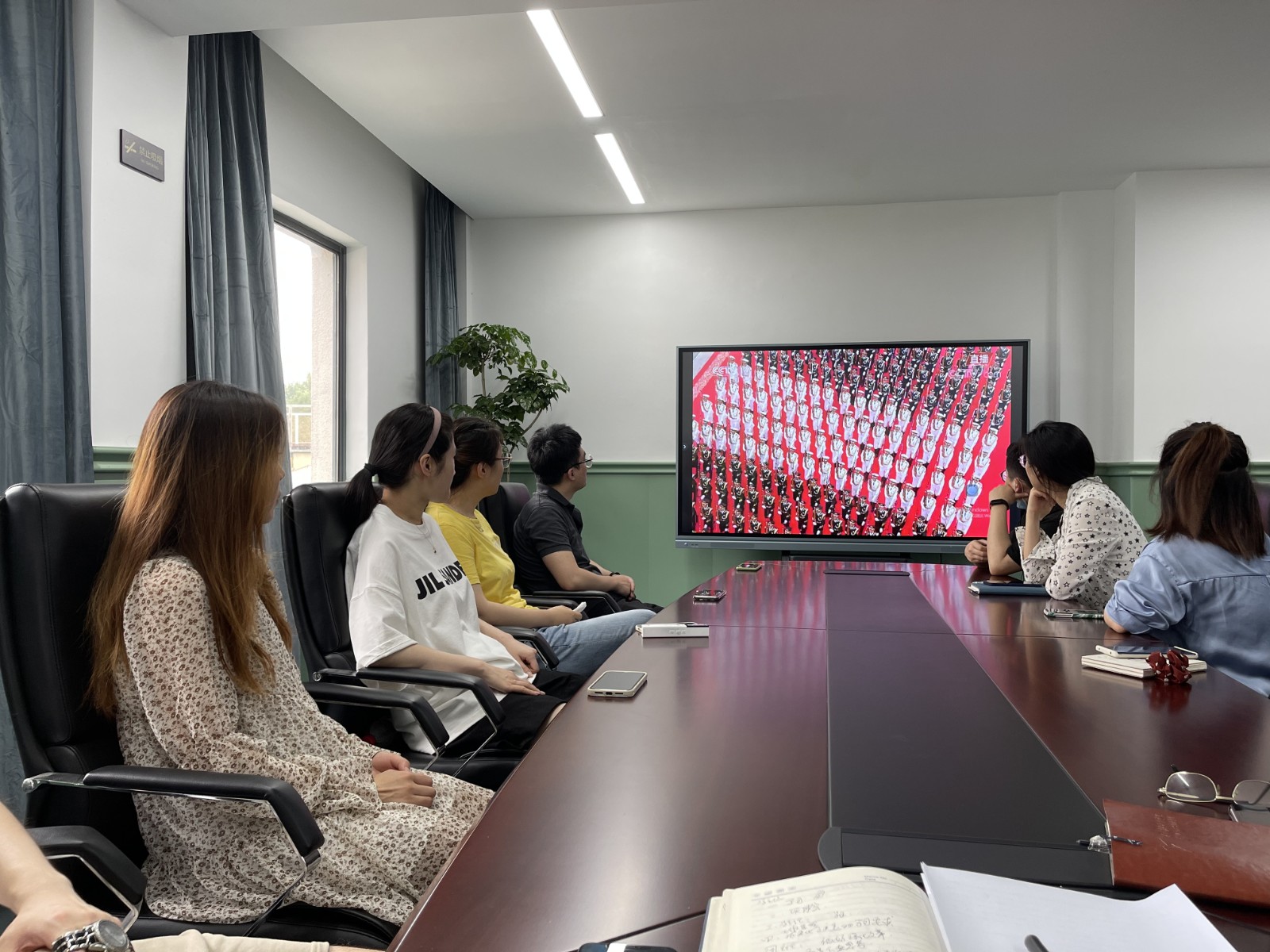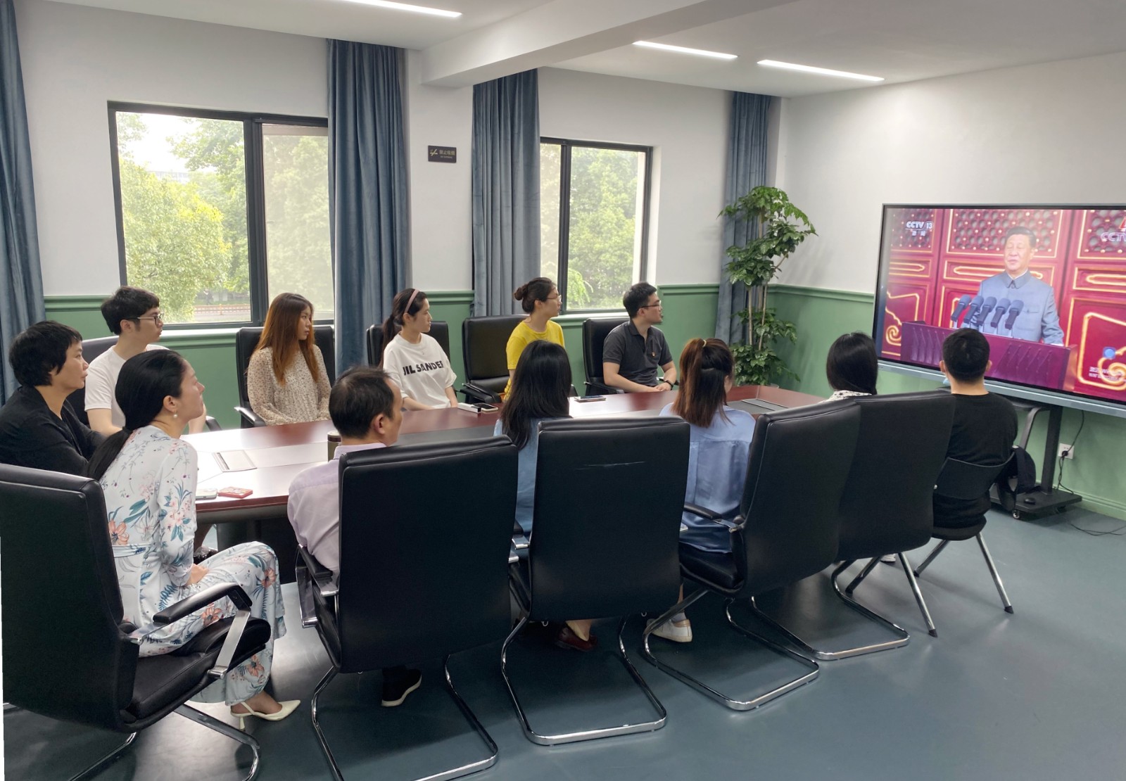 今天上午8时,庆祝中国共产党成立100周年大会在天安门广场举行。天安门广场前开展了隆重而热烈的纪念活动,中共中央总书记、国家主席、中央军委主席习近平发表重要讲话。在浙江艺术职业学院继续教育学院集中观看点,继续教育学院党支部书记、院长周丽芳,副院长沈艳和继续教育学院全体党员干部、教职员工集中收看“庆祝中国共产党成立100周年大会”。