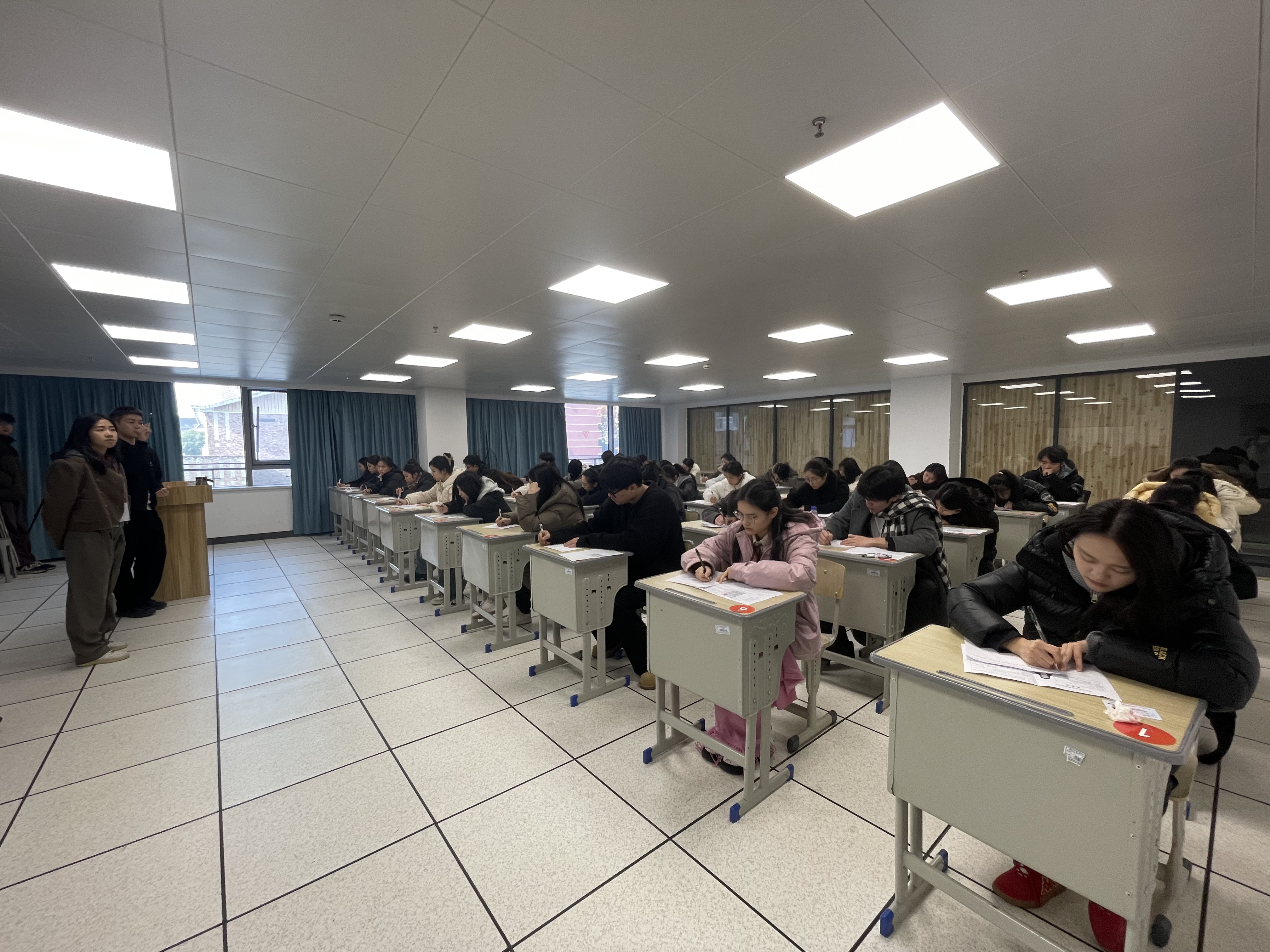 12月21日全天,在省人社厅的指导下,我校12月份职业技能等级认定工作顺利开展。本次开考职业为音响调音员、礼仪主持人,分四个批次,共计146位在校考生与社会考生参加认定。戏剧影视学院院长那刚、继续教育学院院长吴灌红在考试现场全程指导。