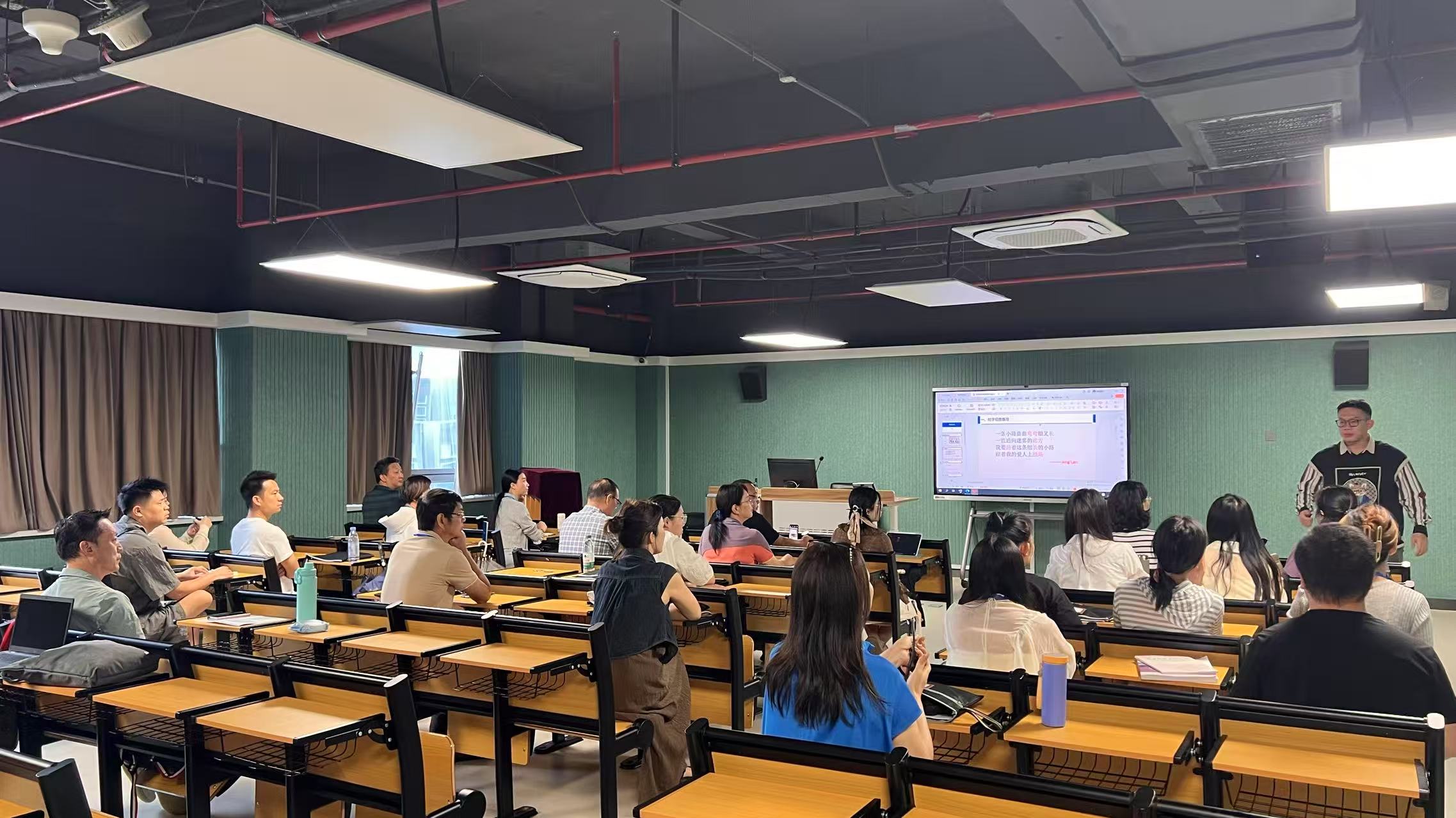 本次培训班课程设置全面,涵盖了声乐学习的多个领域。声乐小组课,从基础技巧到高阶训练逐步深入,精进学员演唱技法,完善发声控制能力;声乐舞台表演课注重培养学员在舞台上的表现力与感染力,帮助他们更好地展现作品;视唱练耳课通过系统训练,提升学员的音乐感知与表达能力;普通话语音课纠正发音问题,让学员们在演唱时吐字更清晰、发音更标准;讲座《如何唱好一首歌》《浅谈歌唱艺术》为学员们揭开科学发声与情感表达的奥秘,从理论层面剖析歌唱的本质与价值,拓宽学员艺术视野。