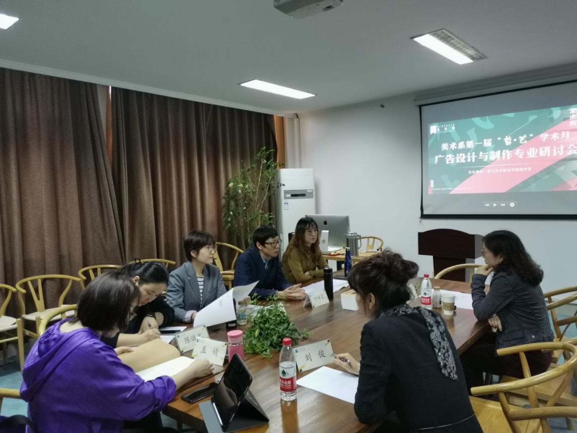 讲座结束后,广告设计与制作专业研讨会在专家工作室开展,教研室教师与胡珂就专业人才培养方案、课程设置及行业需求、本科视觉传达教学,以及围绕讲座主题,如何将传统文化的继承和活化融入课堂教学的方式方法研究等方面进行了专业研讨。