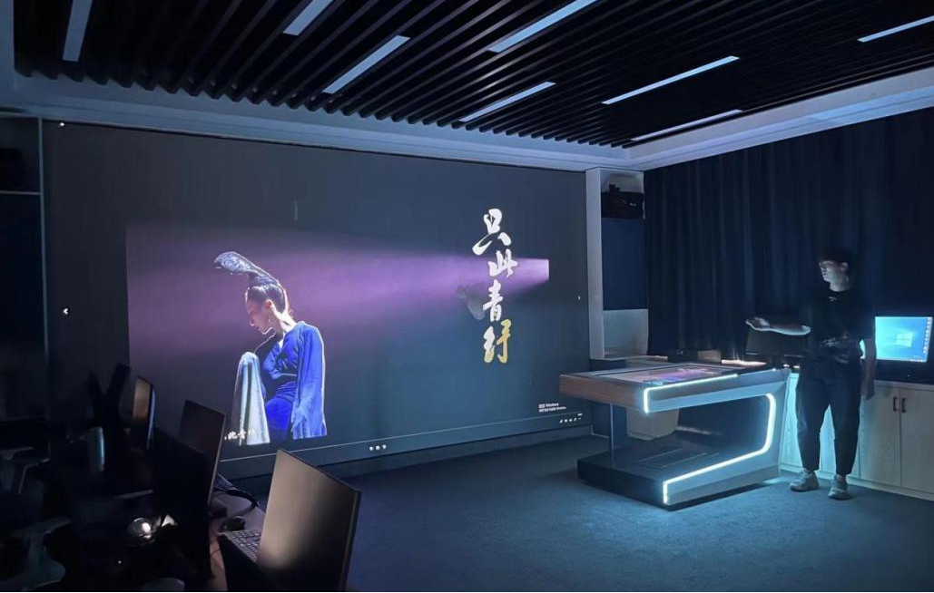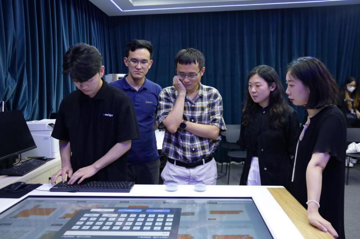 在交流过程中,云设计虚拟仿真数字化工作室成员与杭州群核信息技术有限公司一行对目前教学中所使用的全景VR设备、OR物品识别台、3D扫描设备进行了参观,并观看了工作室学生的课程优秀设计作品。