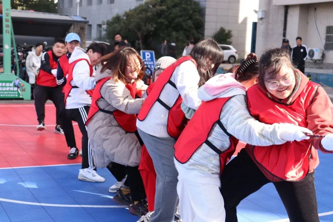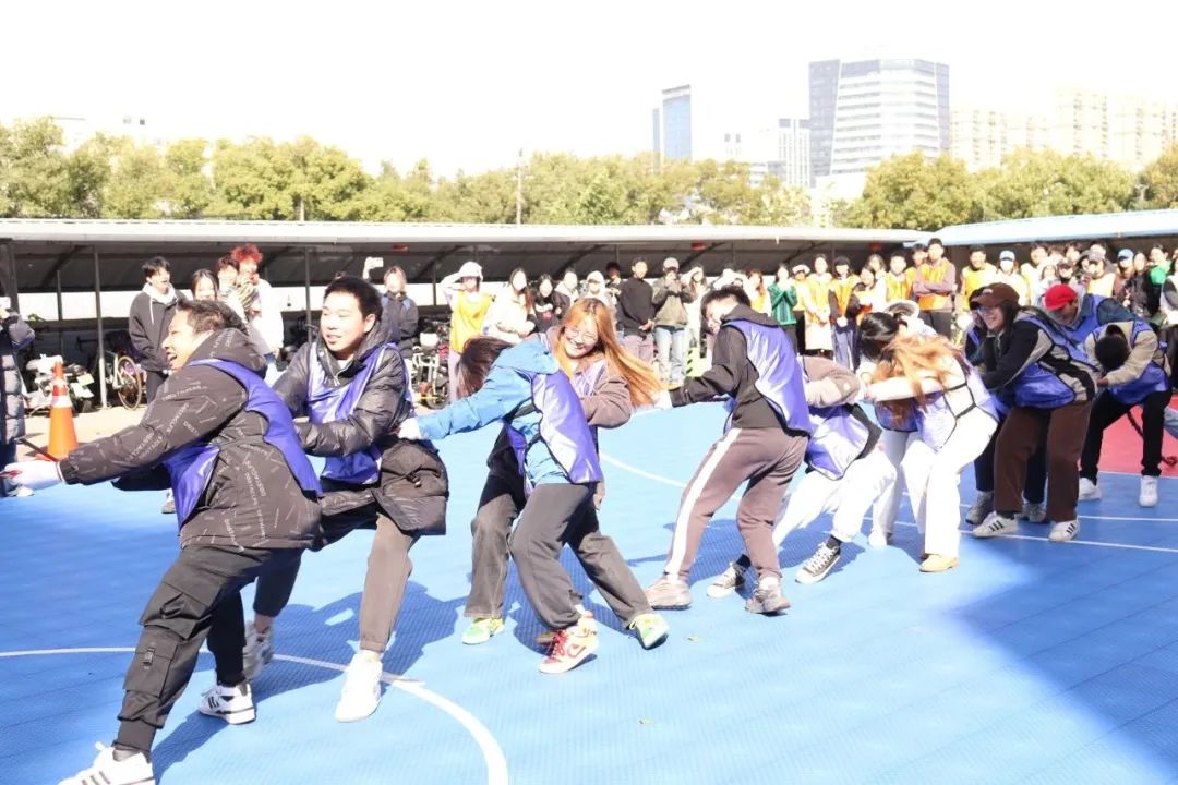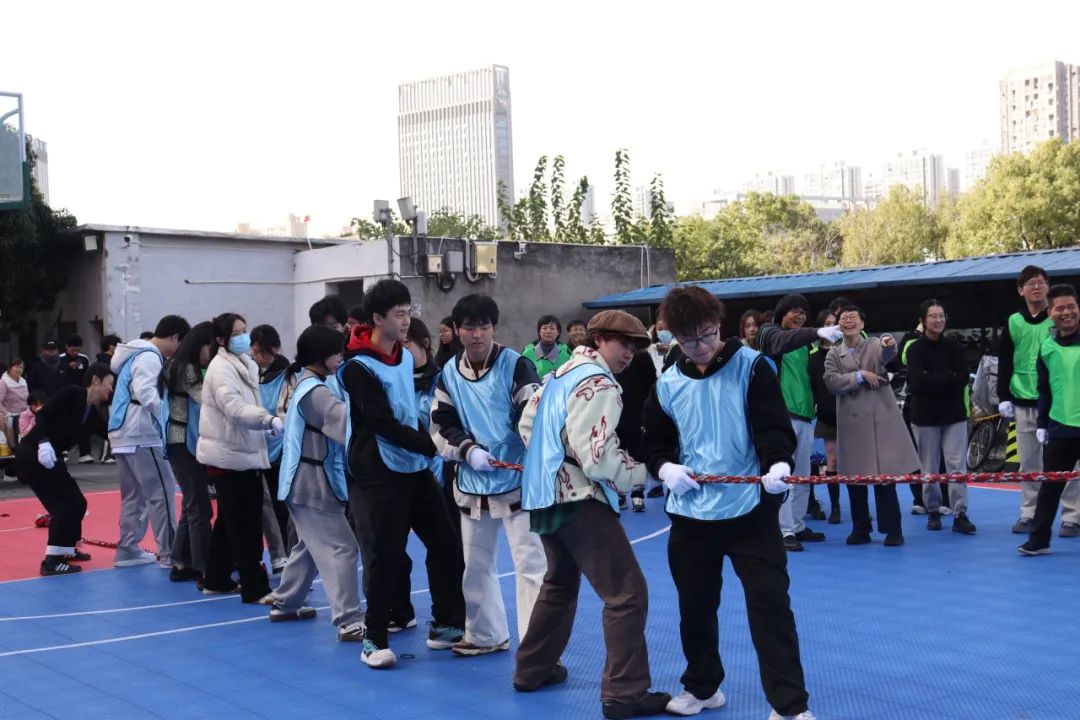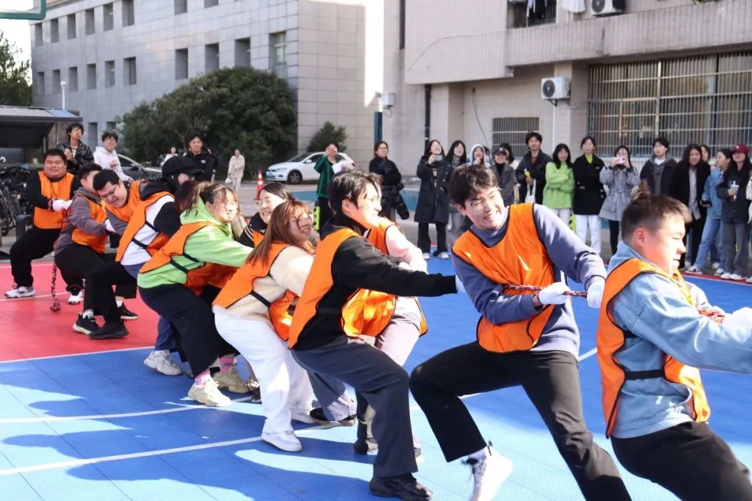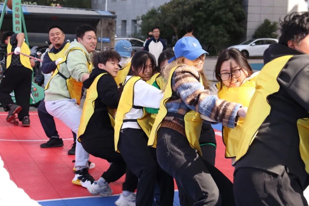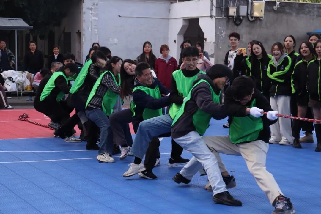 “起绳,拉紧,预备,开始!”随着裁判员一声哨响,拔河比赛正式开始。双方队员紧握麻绳,压低重心,全力往后拉。在场边的呐喊声与助威声中,平时泰然自若的老师们,此刻也都咬紧牙关、开足马力为团队争取胜利,和同学们一起诠释团结向上、不畏挑战的亚运精神。
