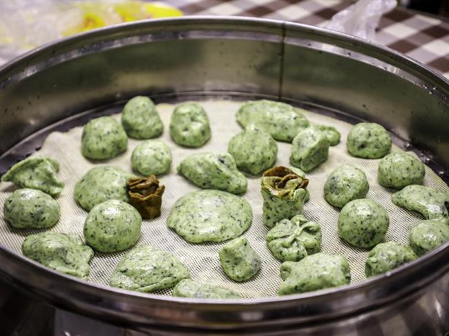 食堂师傅为大家详细讲解做青团的步骤,包括面团的揉搓方法、青团的包制手法和蒸制方式等。