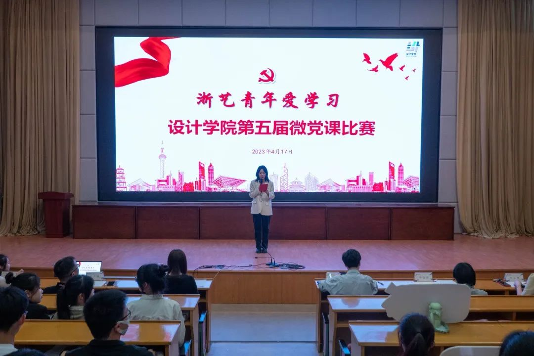 为深入学习贯彻党的二十大精神,学深悟透习近平总书记重要讲话精神,进一步丰富设计学院党课教育内容,创新党课教育形式,4月17日,设计学院开展“浙艺青年爱学习”第五届微党课比赛。马克思主义学院副院长胡卓群,设计学院党总支书记汪琳,常务副院长李昌国,党总支专职副书记顾才铭,副院长何佳玮,党总支委员、教工第一党支部书记巴蕾,党总支委员、教工第二党支部书记贾娜娜,学生党支部书记龚林峰出席并担任评委。辅导员、学生党员、第 41 期党校学员、 2022-2023 学年第二学期入党积极分子、青年团员现场观摩学习。