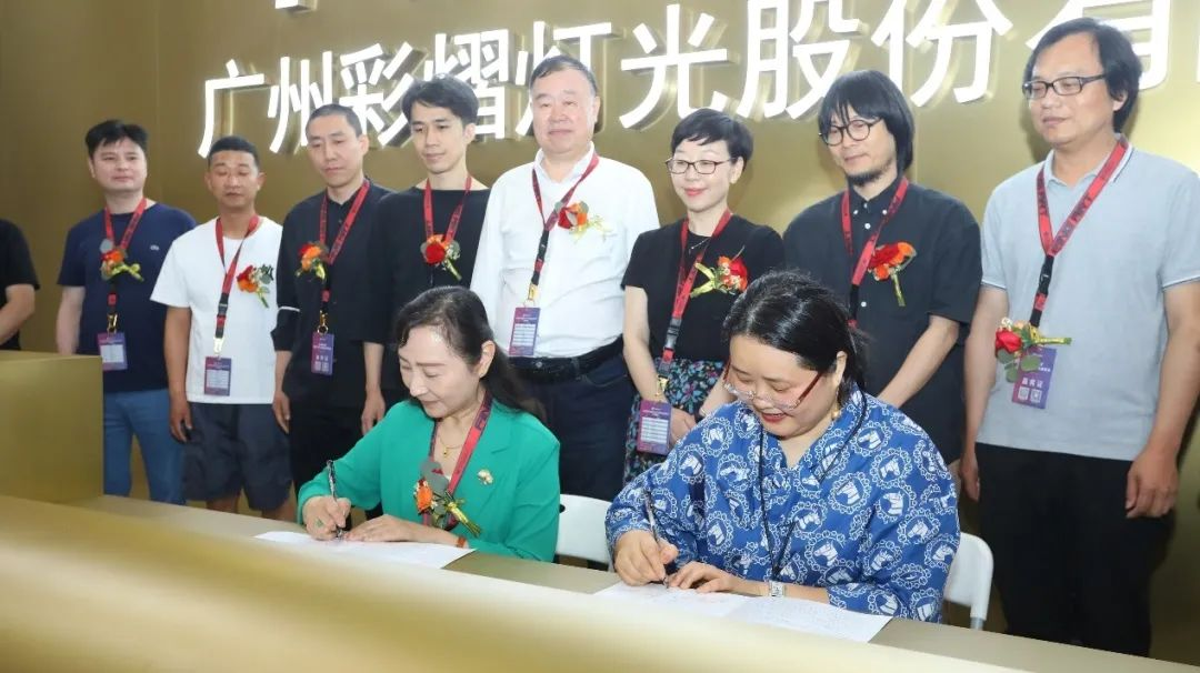 黄杭娟院长与广州市彩熠灯光股份有限公司董事长王惠均签订“浙江艺术职业学院产学合作实践基地协议书”