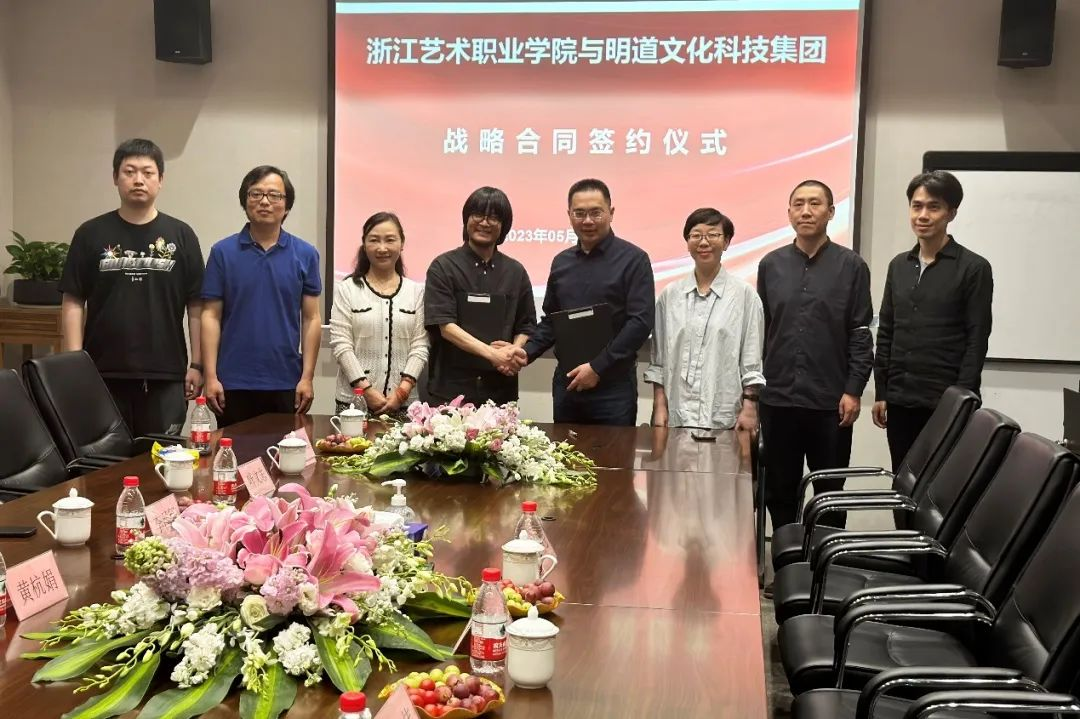 设计学院常务副院长李昌国与广州市明道文化科技集团股份有限公司董事副总裁李钊签订“浙江艺术职业学院产学合作实践基地协议书”