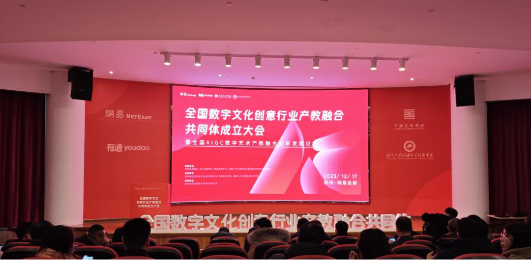 全国数字文化创意行业产教融合共同体由网易有道、中国美术学院和湖南大众传媒职业技术学院牵头,联合行业企业、高等院校、科研机构、行业协会和上下游企业等共同参与成立,覆盖24省、9所高等院校、103所职业院校、33家行业企业。共同体以人才培养、师资培训、教学资源、科研创新、技能竞赛、社会服务作为重点任务进行攻关,旨在赋能产教供需对接,服务文创产业发展。