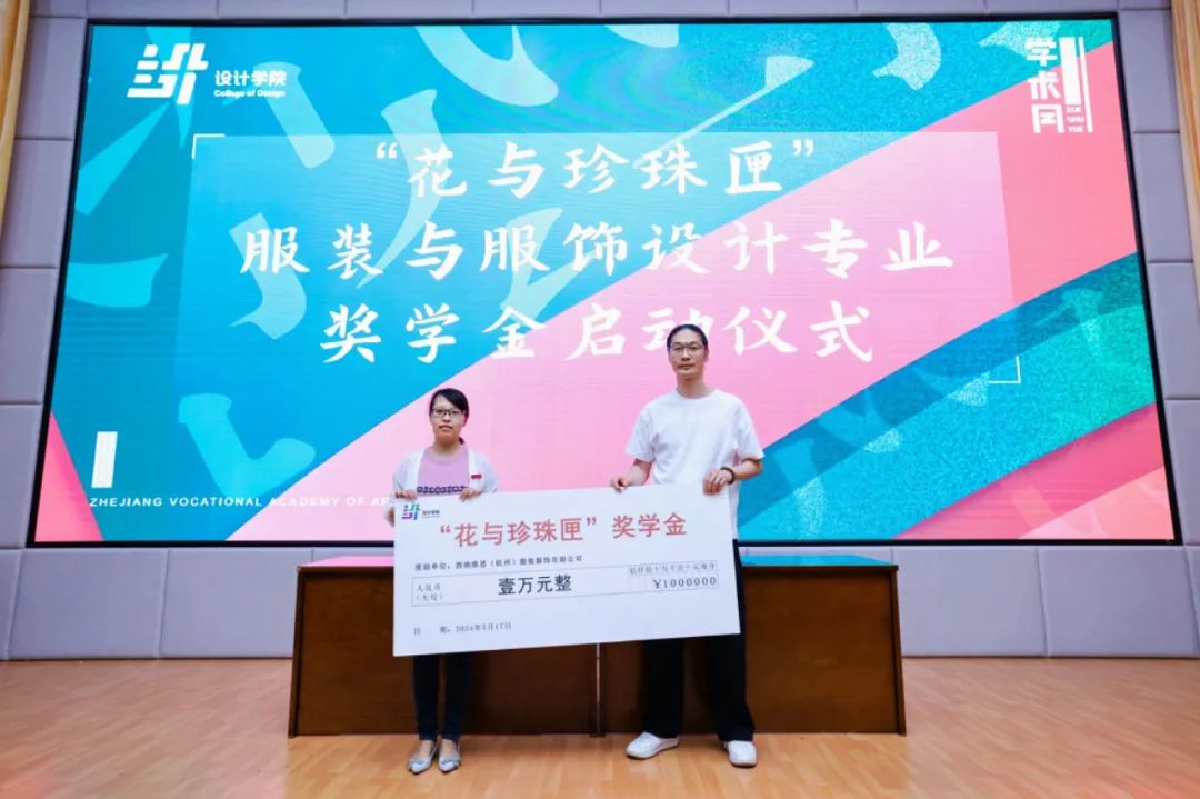 开幕式上,设计学院举行了“花与珍珠匣”服装与服饰设计专业奖学金启动仪式,进一步鼓励设计学子发挥团队合作精神和创新设计能力,推动我院专业建设和人才培养。本学期西纳维思(杭州)服装服饰有限公司“花与珍珠匣”品牌也将与服装与服饰设计专业进行深度合作,开启“花艺杯”首届洛丽塔服装设计大赛。