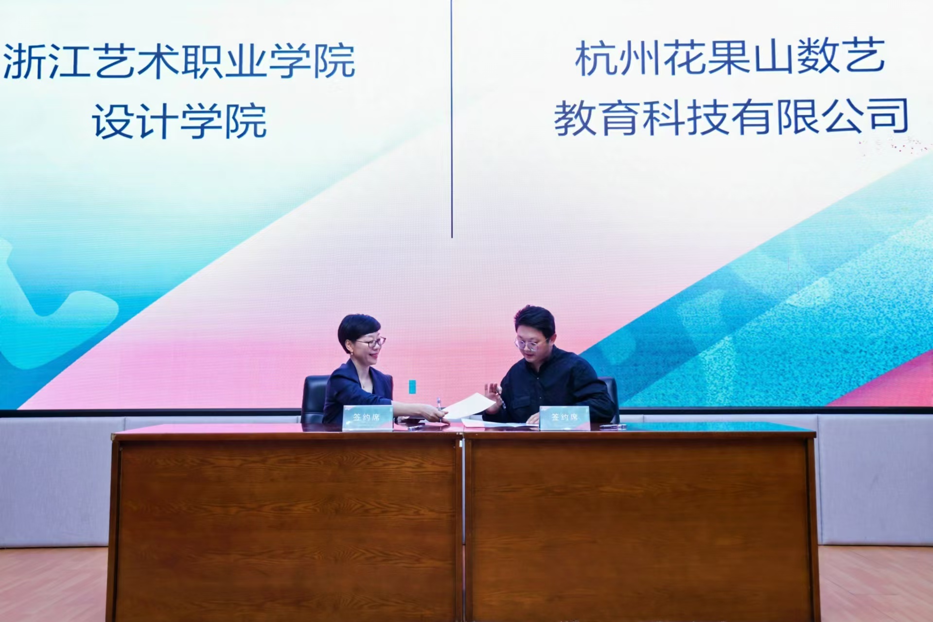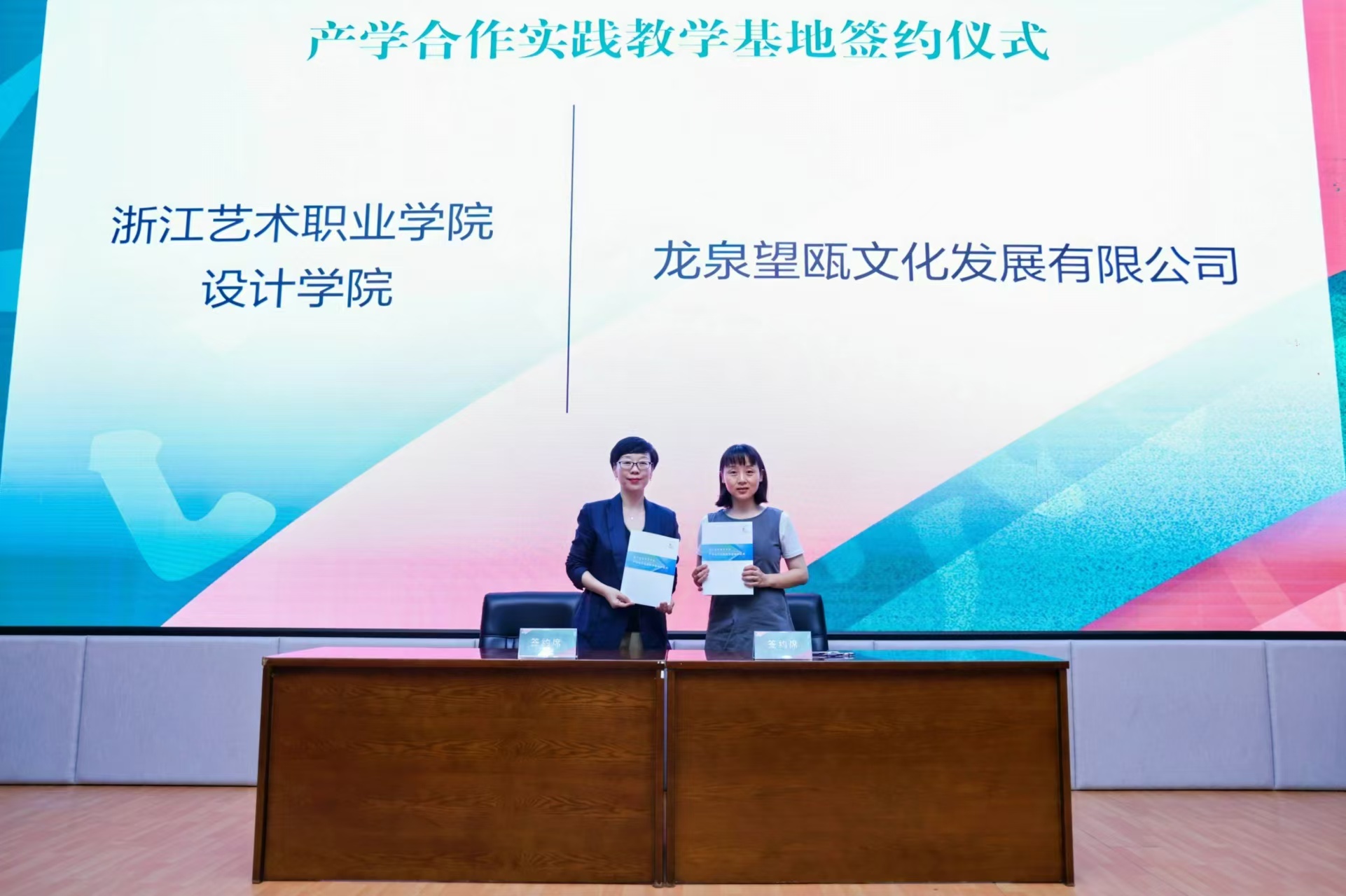 汪琳代表设计学院同校企合作企业签署《浙江艺术职业学院产学合作实践教育基地协议书》