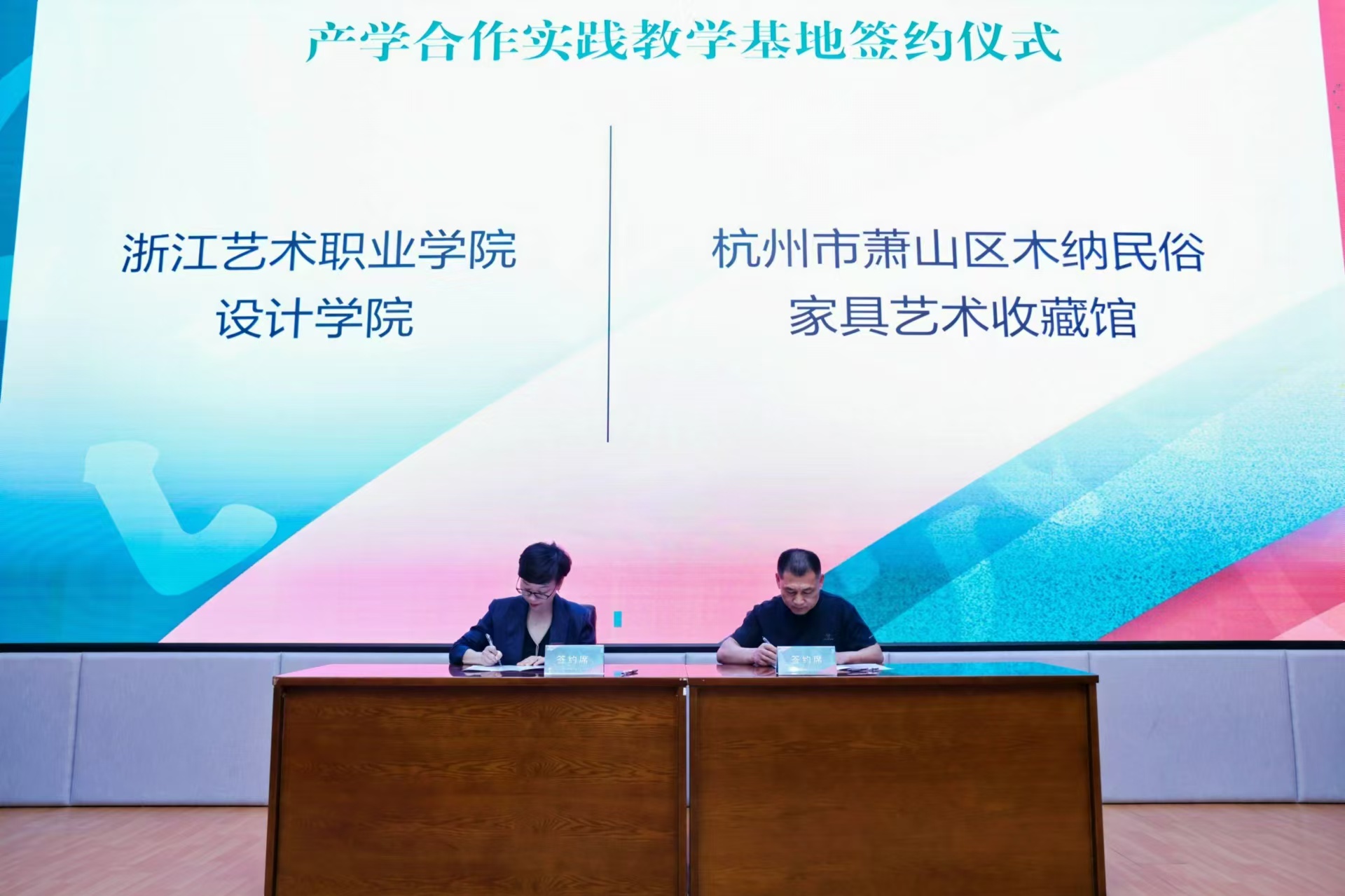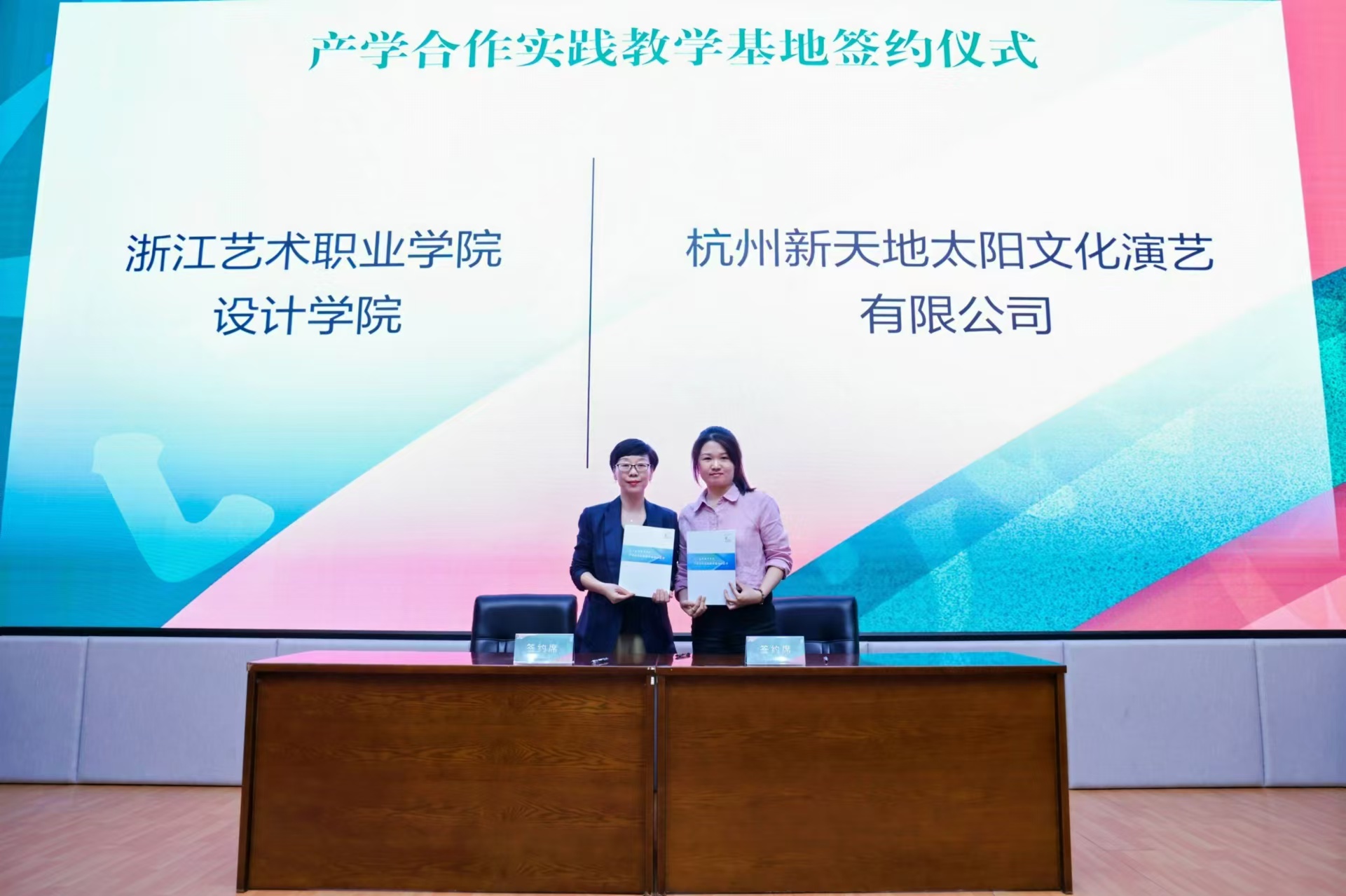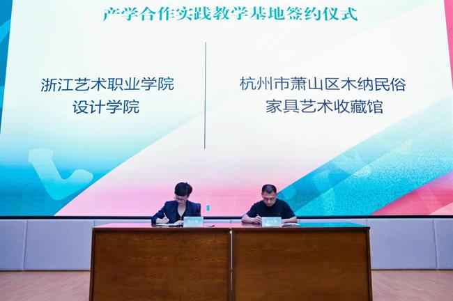 设计学院分别与杭州新天地太阳文化演艺有限公司,西纳维思(杭州)服装服饰有限公司,杭州市萧山区木纳民俗家具艺术收藏馆,杭州花果山数艺教育科技有限公司,贝壳找房(北京)科技有限公司,龙泉望瓯文化发展有限公司签订产学合作实践教学基地合作协议并授牌,进一步深化校企合作,构建协同育人新格局。