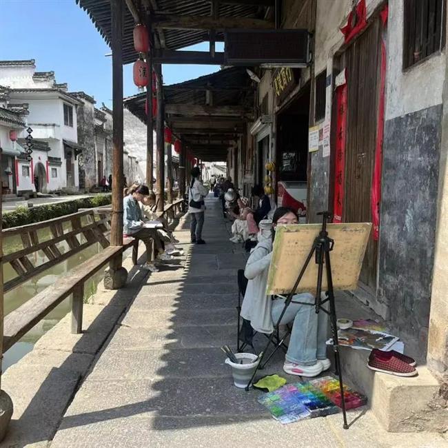 为提高学生观察和认知能力,激发创作思维,在自然中积累视觉元素,深入感受新时代乡村之美,一年一度的采风写生实践活动如期而至。此次采风写生实践活动是《校内外岗位实践》课程的具体践行,由动漫设计专业教师吴炜栋、汤厉昊、张梅芳、毛欣玥,环境艺术设计专业教师周益、刘馨蕾、沈熠铭、蒋杰8位教师带队,2023级动漫设计专业和环境艺术设计专业4个班级153名学生赴安徽歙县,进行为期一周的采风写生实践活动。