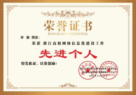 近日,浙江省计算机学会教育信息化专业委员会、中国教育和科研计算机网浙江主节点联合表彰了一批2024年高校网络信息化建设先进单位和先进个人。我校继2023年获浙江高校网络信息化建设工作 “网络安全”及“数字治理”两项先进单位荣誉后,2024年再获“浙江高校网络信息化建设工作-数字安全方向先进单位”、“浙江高校网络信息化建设工作-信息技术应用创新方向先进单位”两项荣誉,图书信息中心许衡老师被评为“浙江高校网络信息化建设先进个人”。