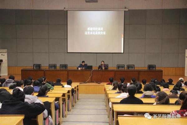 我们每位同学都将面临的问题——“升学还是就业”?王鹏用自身的优劣势的分析,给了我们他的解读。他强调了不可忽视的文化课业,向我们表述了,在大学生活中他机缘巧合他又参加了全国舞蹈“荷花奖”,告诉我们创编是需要积累,机会是留给有准备的人。在他考虑就业方向去留时,他选择了回归故乡----温州,为家乡奉献出自己的一份力量。