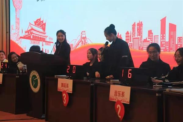 舞蹈系代表队在开始比分落后的情况下,顶住压力对答如流,自信满满,答题正确率极高,一路赶超。在惊心动魄的风险环节,答对得分,打错扣分,而且分值很高,让所有人都为她们捏了一把汗,这对选手的心理素质也是一个巨大的考验!