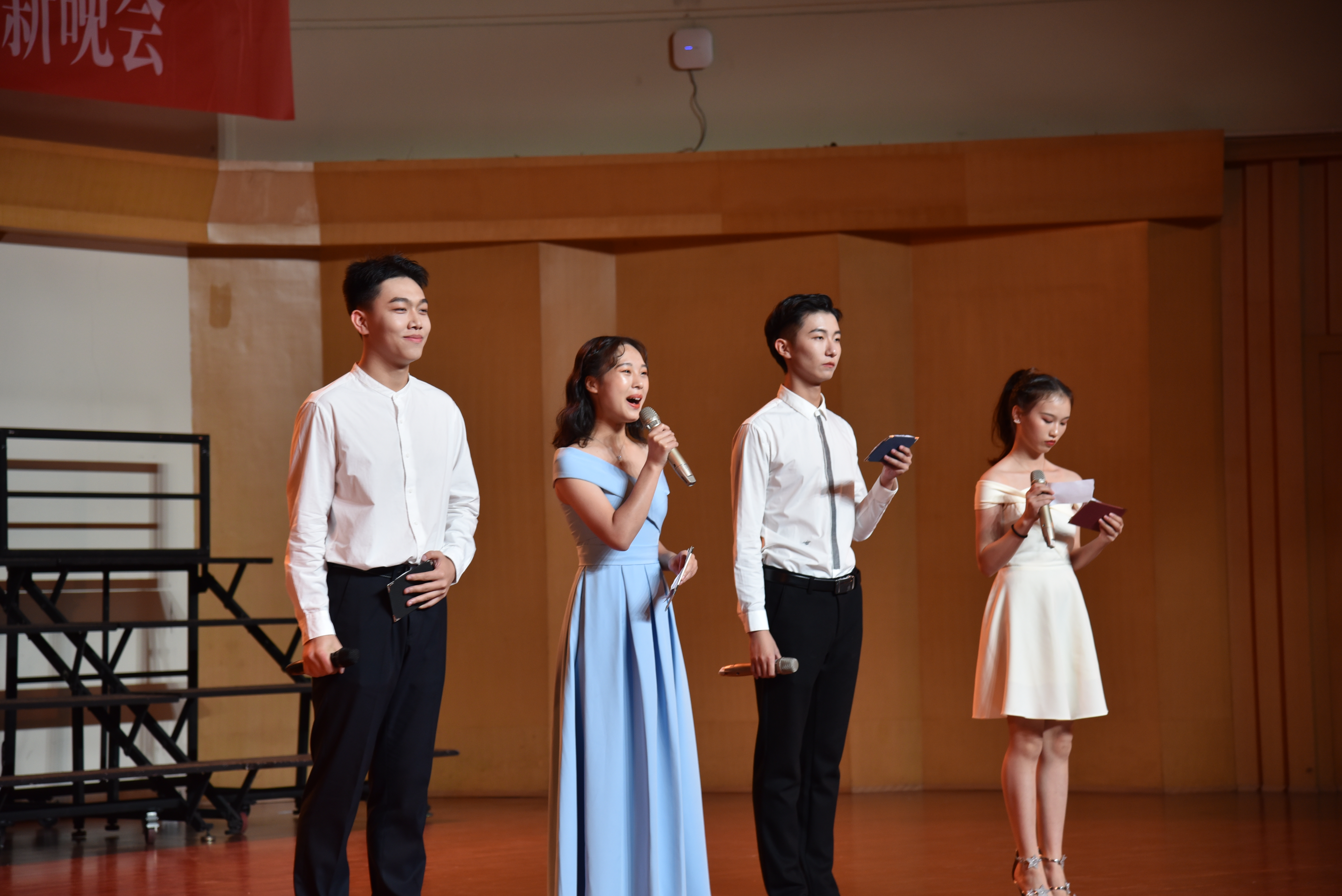主持人汪承旭,章蜜,俞铭涵,朱珂用激昂动人的开场鼓励文管系学子绽放青春,书写未来的篇章,并由此拉开了晚会的帷幕。
