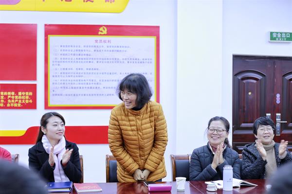 沈军甫向与会教师们介绍了胡海影参加工作四十余年的履历、成绩和荣誉。在工作中她兢兢业业、辛劳付出,对教学事业,她痴心奉献,无怨无悔。作为一名党员,她师德高尚、辛勤耕耘,发挥了先锋模范作用。她把最宝贵的青春年华奉献给了学校,也见证了学校发展和历史的变迁。她是学校2002年以来第一位副高职称的资深辅导员,获得了多项国家级、省级荣誉,可谓桃李满天下。