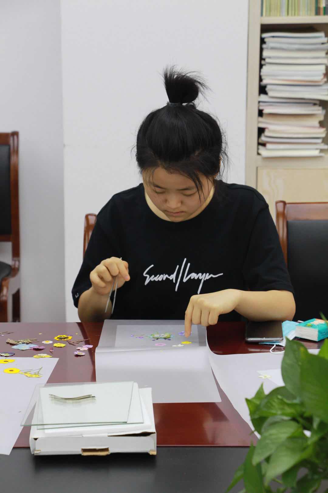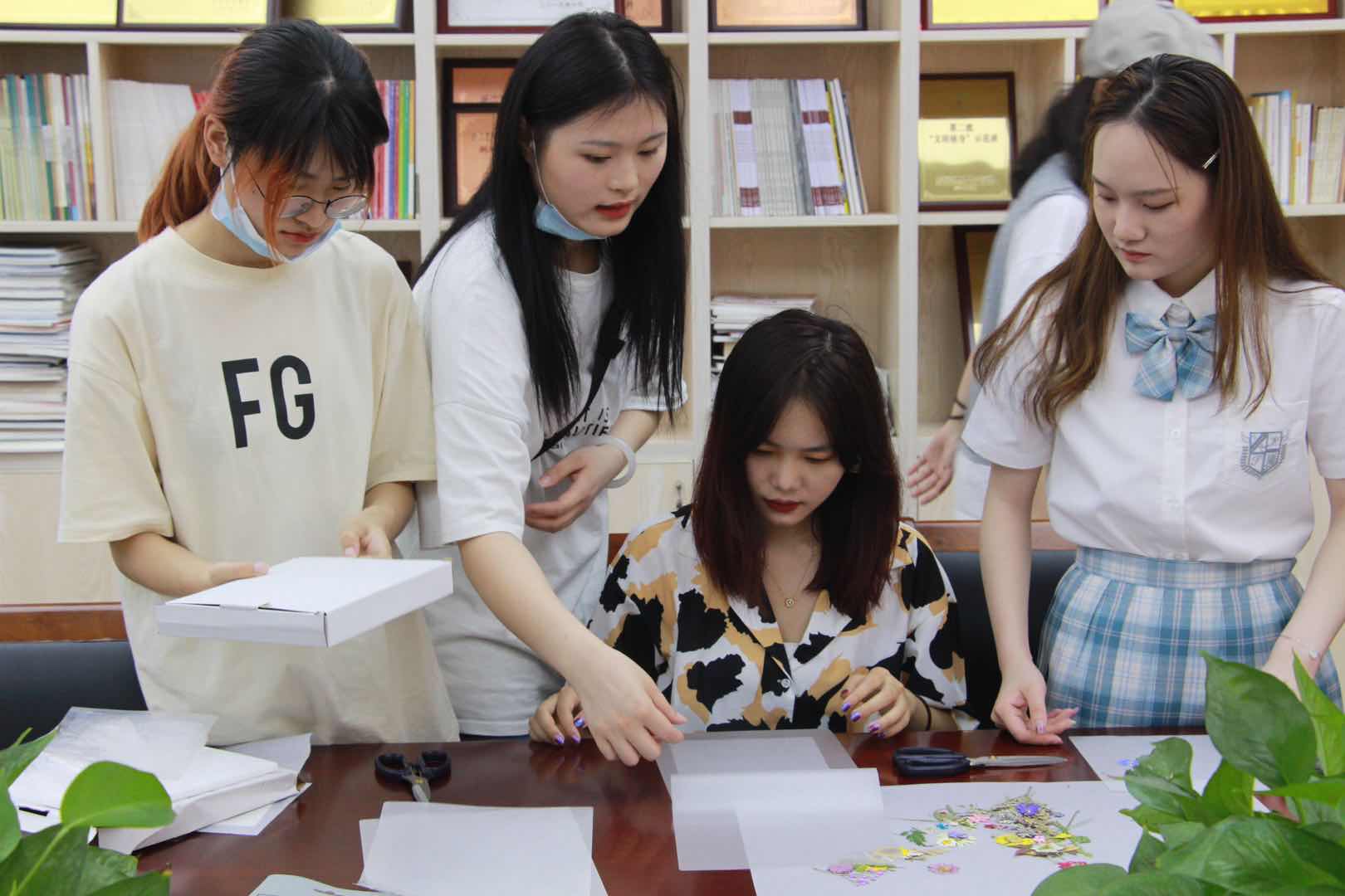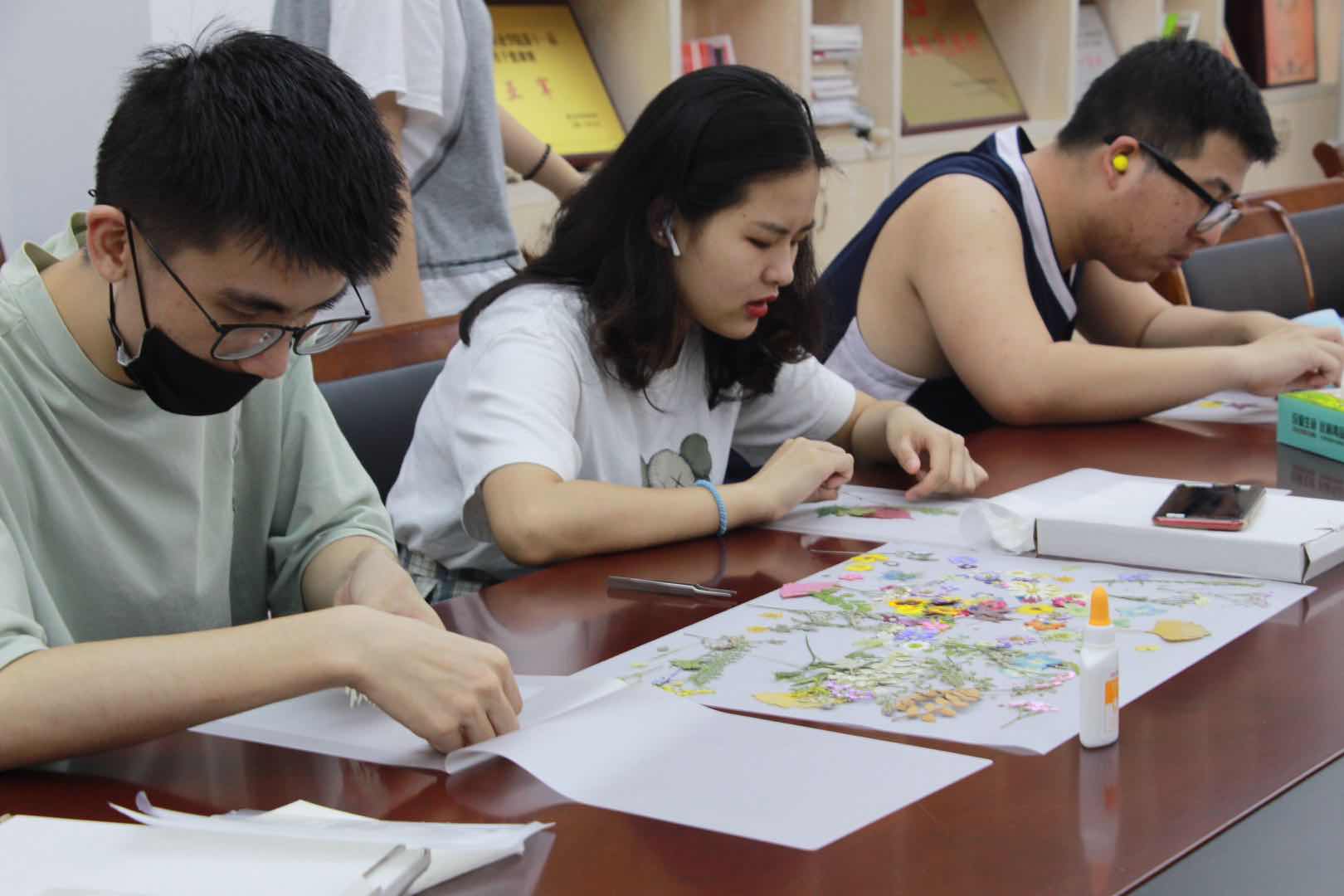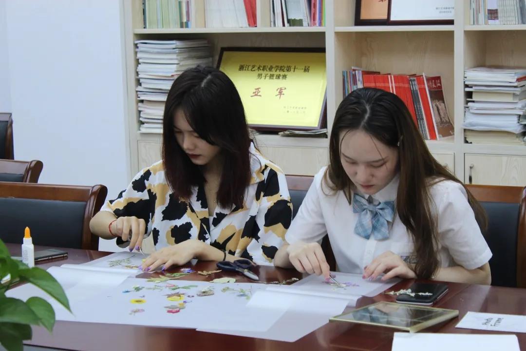 6月15日中午,十五位师生在13501教室体验“巧艺传承,匠心筑梦”——文化管理系第二届“浙艺手艺”活动周手工艺体验活动:植物标本拼贴画。