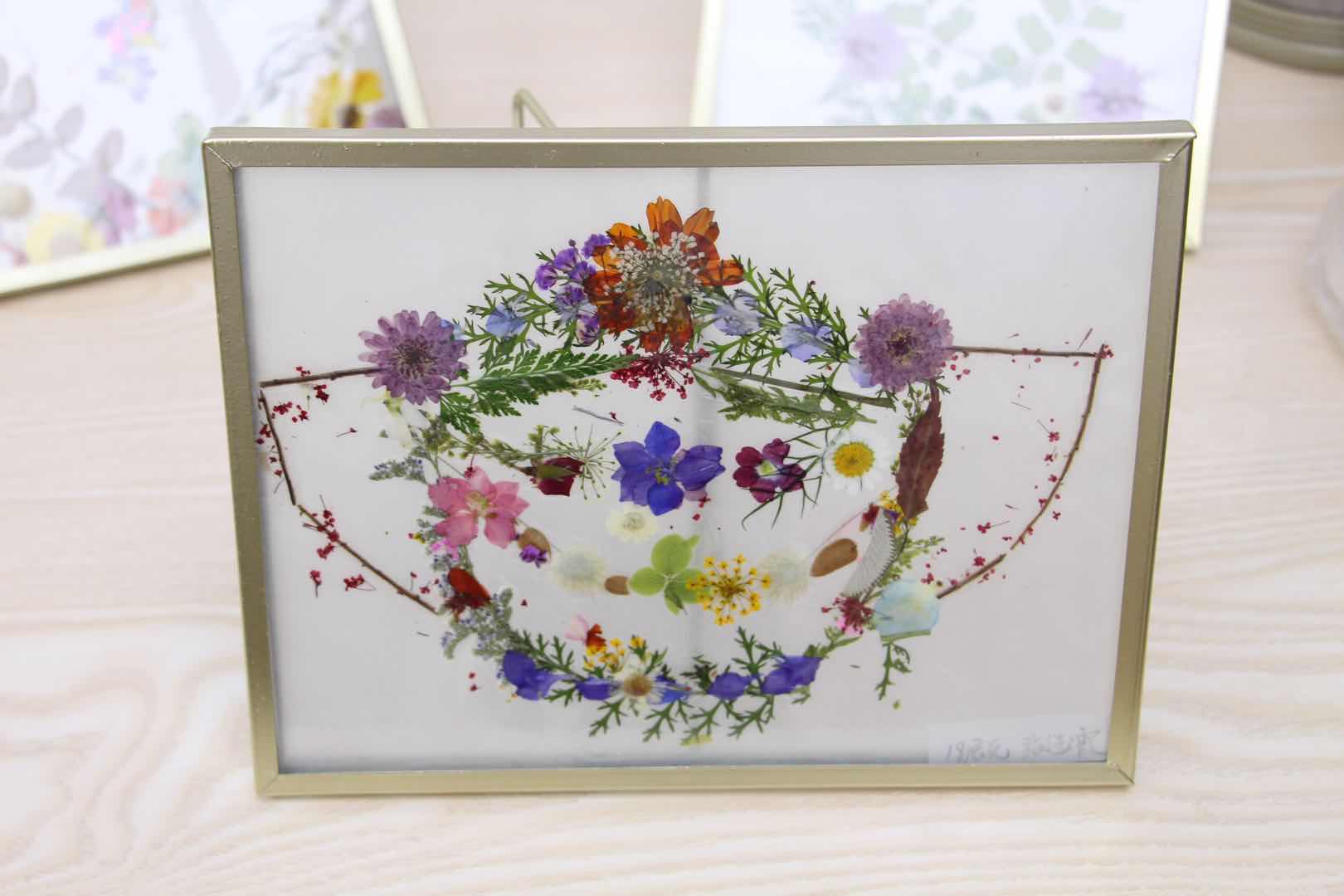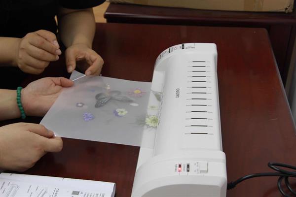 在作品完成之后,黄茜老师将大家的作品进行塑封,裁剪至合适大小后放入玻璃相框中进行展示。在老师的加工下,一幅幅作品显得更为精致,我们能够更好地保存并欣赏这份美丽。