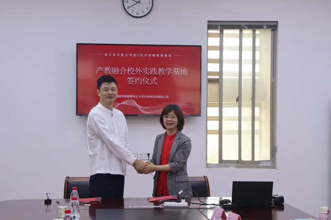为进一步深化产教融合,优化学前教育专业人才培养,增强职业教育适应性,5月19日,浙江艺术职业学院文化管理系与杭州维翰集团签署战略合作协议,并授牌浙江艺术职业学院产教融合教学实践基地。校党委委员、副院长沈军甫出席签约仪式,文化管理系班子、杭州维翰集团董事长徐凌佳一行参加签约仪式。