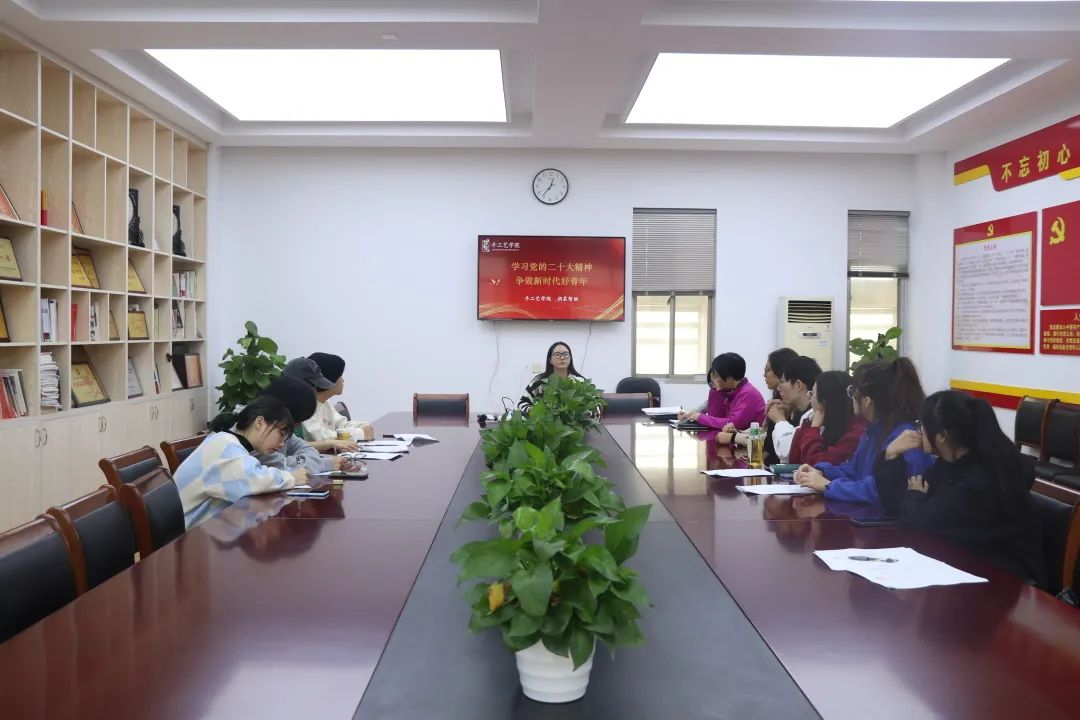 为深入学习宣传贯彻党的二十大精神,争做有理想、敢担当、能吃苦、肯奋斗的新时代好青年,11月22日中午,手工艺学院学生党支部书记胡墨智丽在13501会议室以《学习党的二十大精神,做新时代合格党员》为主题作专题授课,学生支部全体党员、发展对象参加。