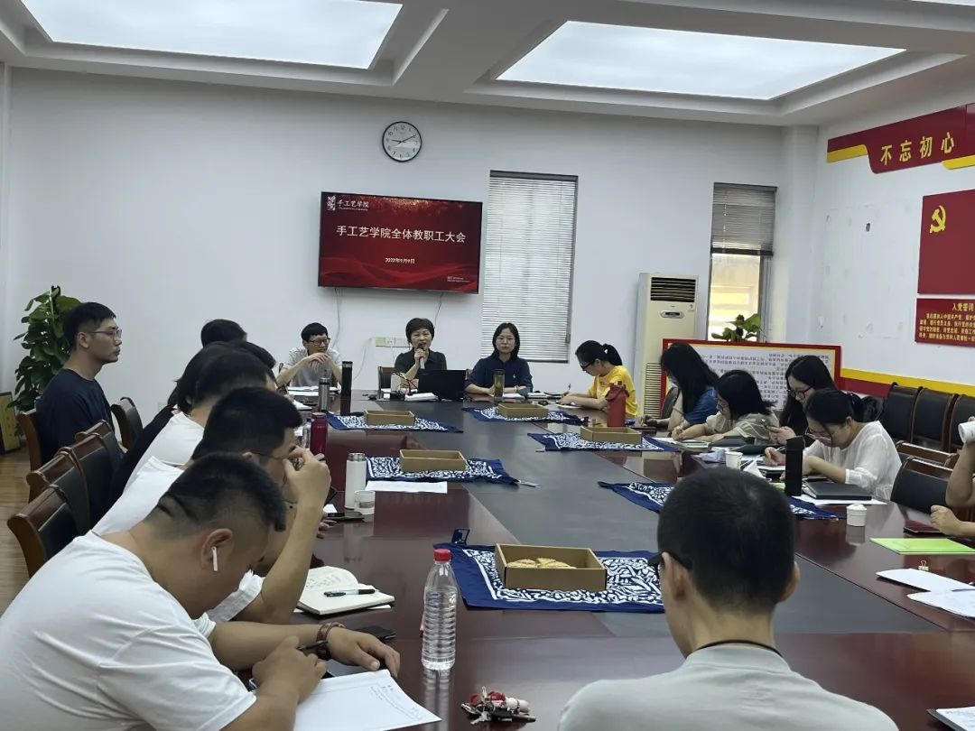 为确保新学期工作稳步推进,9月9日,手工艺学院分别召开全体教职工会议、教研室主任会议、班主任会议;开展全院教职工理论学习会;落实开学实训室安全检查,把握发展主动脉,凝心聚力启新程,以实际行动迎接党的二十大召开。