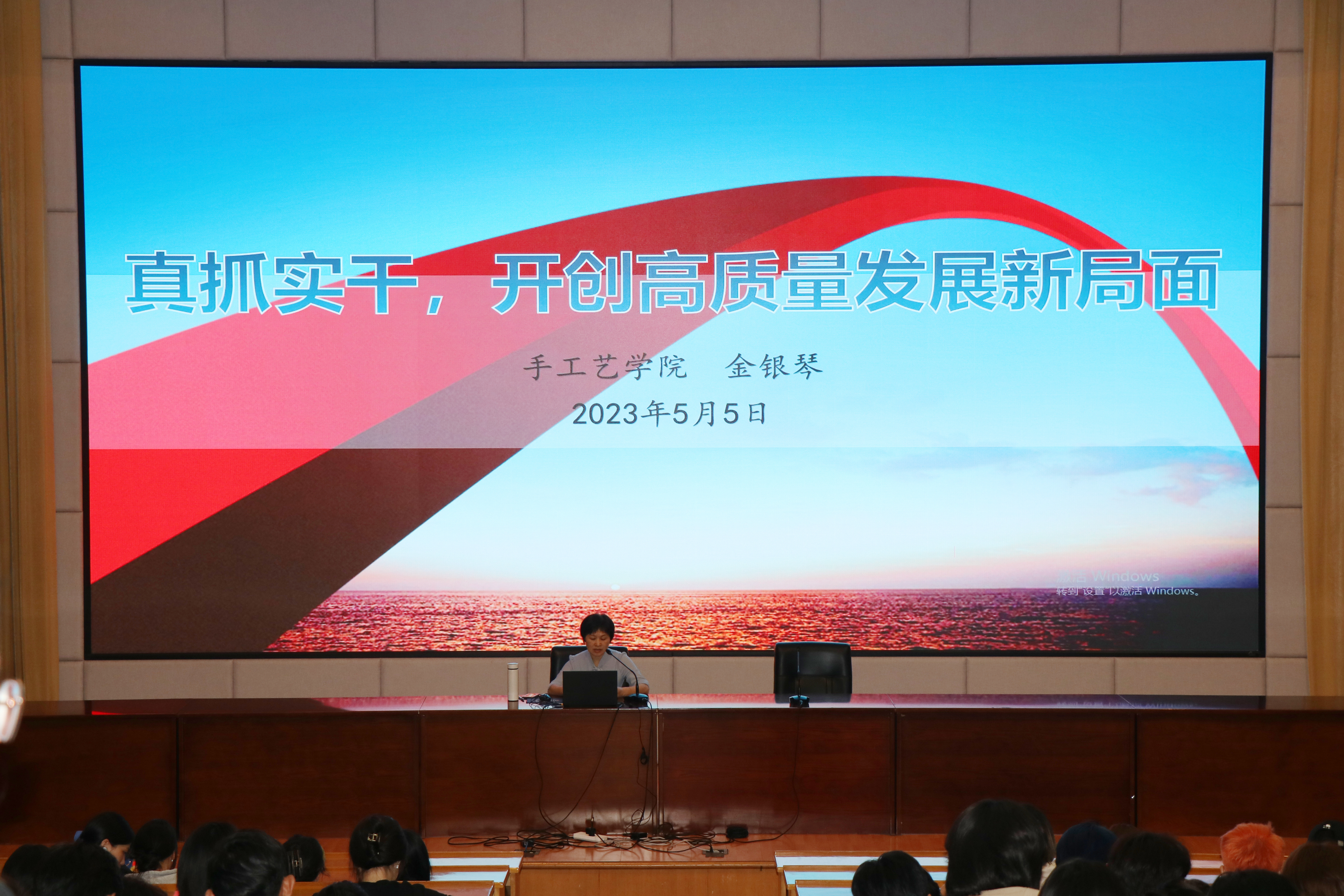 为深入贯彻落实党的二十大精神,扎实推进习近平新时代中国特色社会主义思想进课堂、进头脑,以实际行动引导学生树立正确的世界观、人生观和价值观,5月5日晚上,手工艺学院党总支书记、副院长金银琴以《真抓实干,开创高质量发展新局面》为题,为手工艺学院学生上了一堂内容丰富、精彩纷呈的形势与政策课。