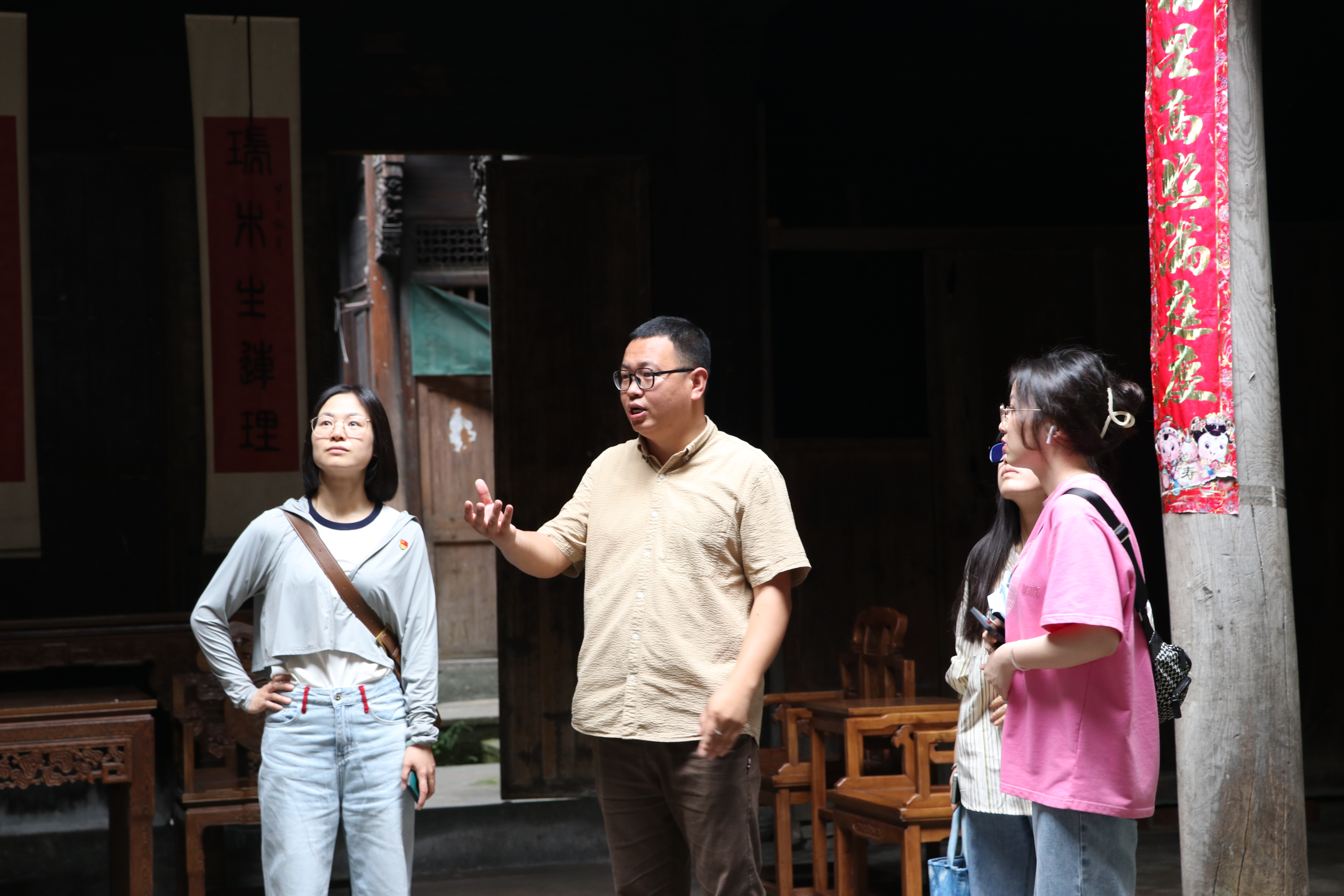 活动开始前,“深澳百匠艺术文化村项目”发起人宋凯带领同学们参观古村落,感受文化古村魅力。深澳古村是申屠家族的血缘村落,是桐庐一带的江南古村,因其庞大的古建筑群、独特的地下水系、深厚的宗族文化和浓郁的民俗风情而闻名。近年来,深澳村坚持以“明清古建筑群”为肌理,“地方民俗文化”为特色,“美丽田园风光”为底板,深度挖掘古村落资源,加快盘活闲置资产,突出“古风古韵”,着力打造“百匠创客街区”,探索资源转化富民之路,实现“村美”与“民富”的有机统一。