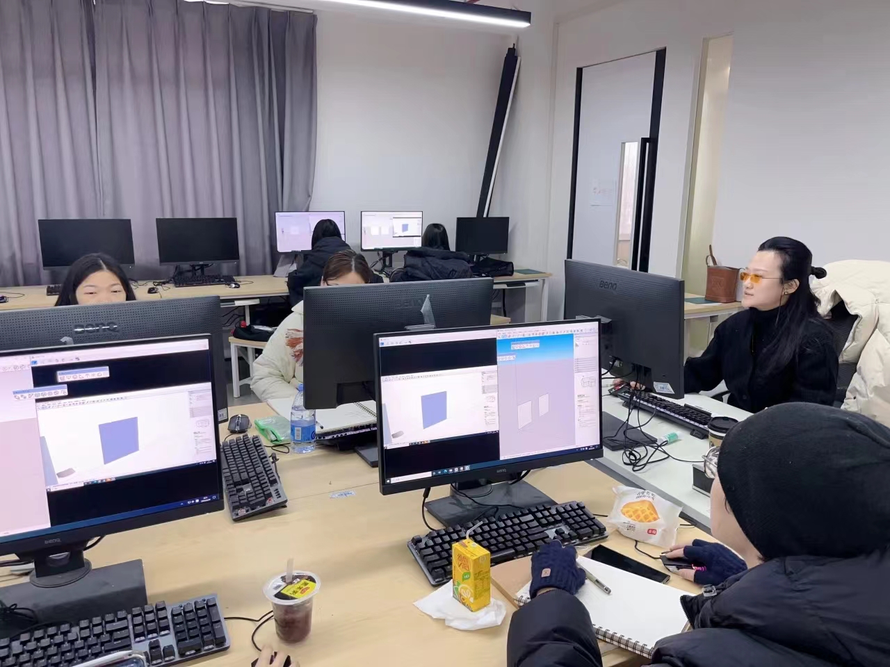 《商业展陈空间设计》作为本学期“电脑设计基础2”的第一节课,以介绍sketchup软件的基础命令为主。课堂主要介绍了SU的“点——线——面“建模逻辑,以及建模的基础命令和快捷键。着重以简单体块和家具单体为例,有助于学生建立起严谨的建模方法,为后期空间建模打下基础。