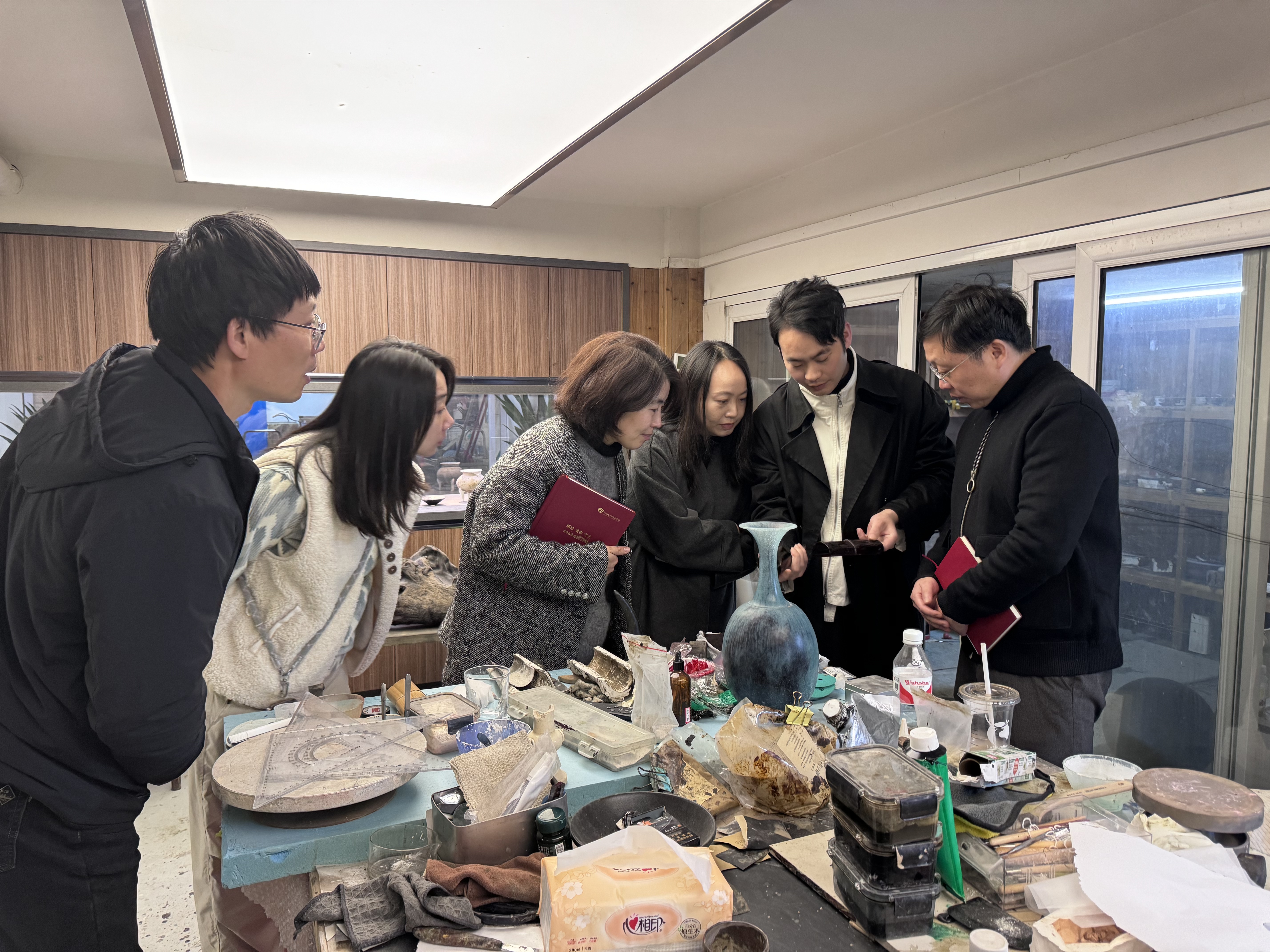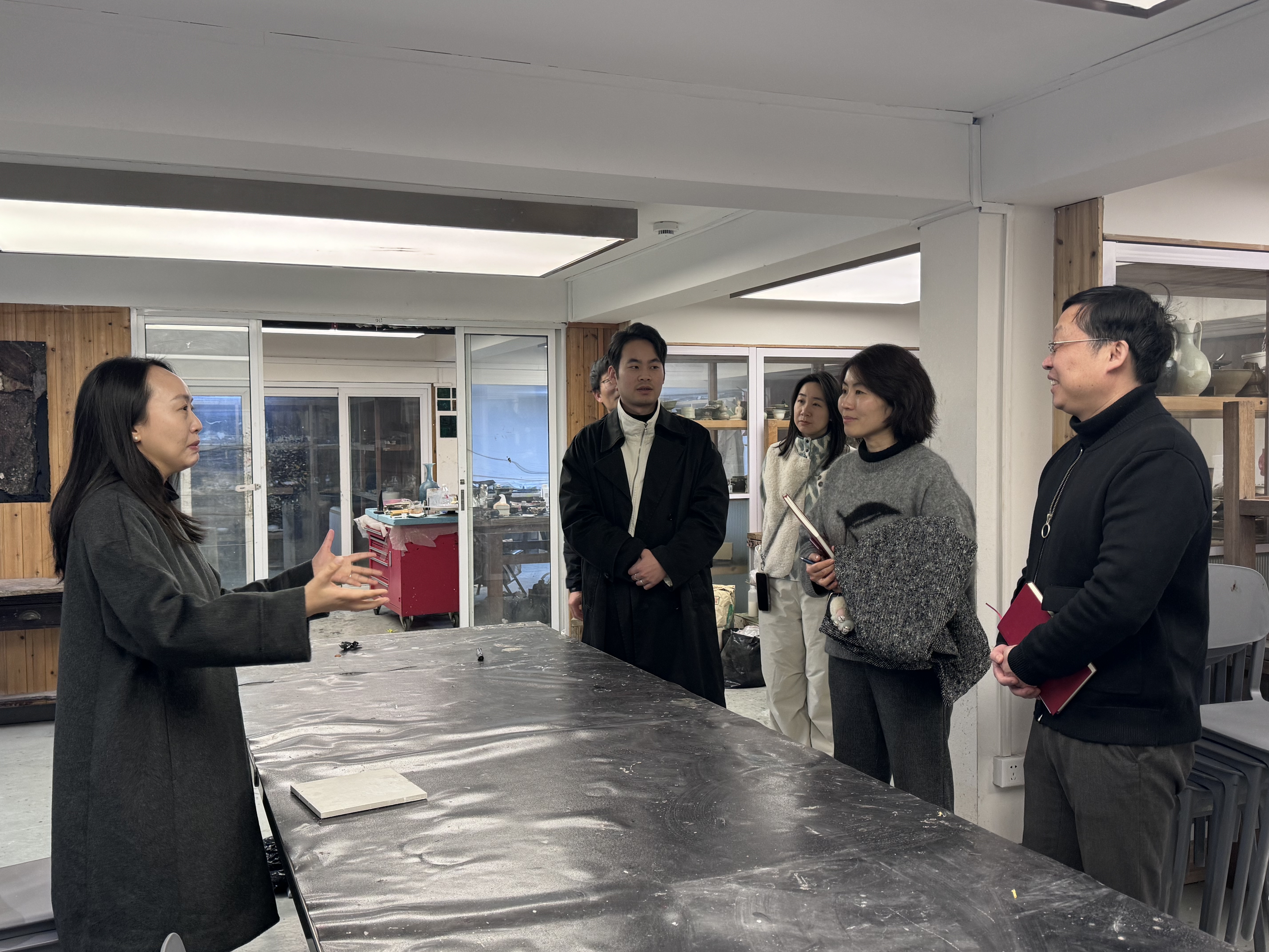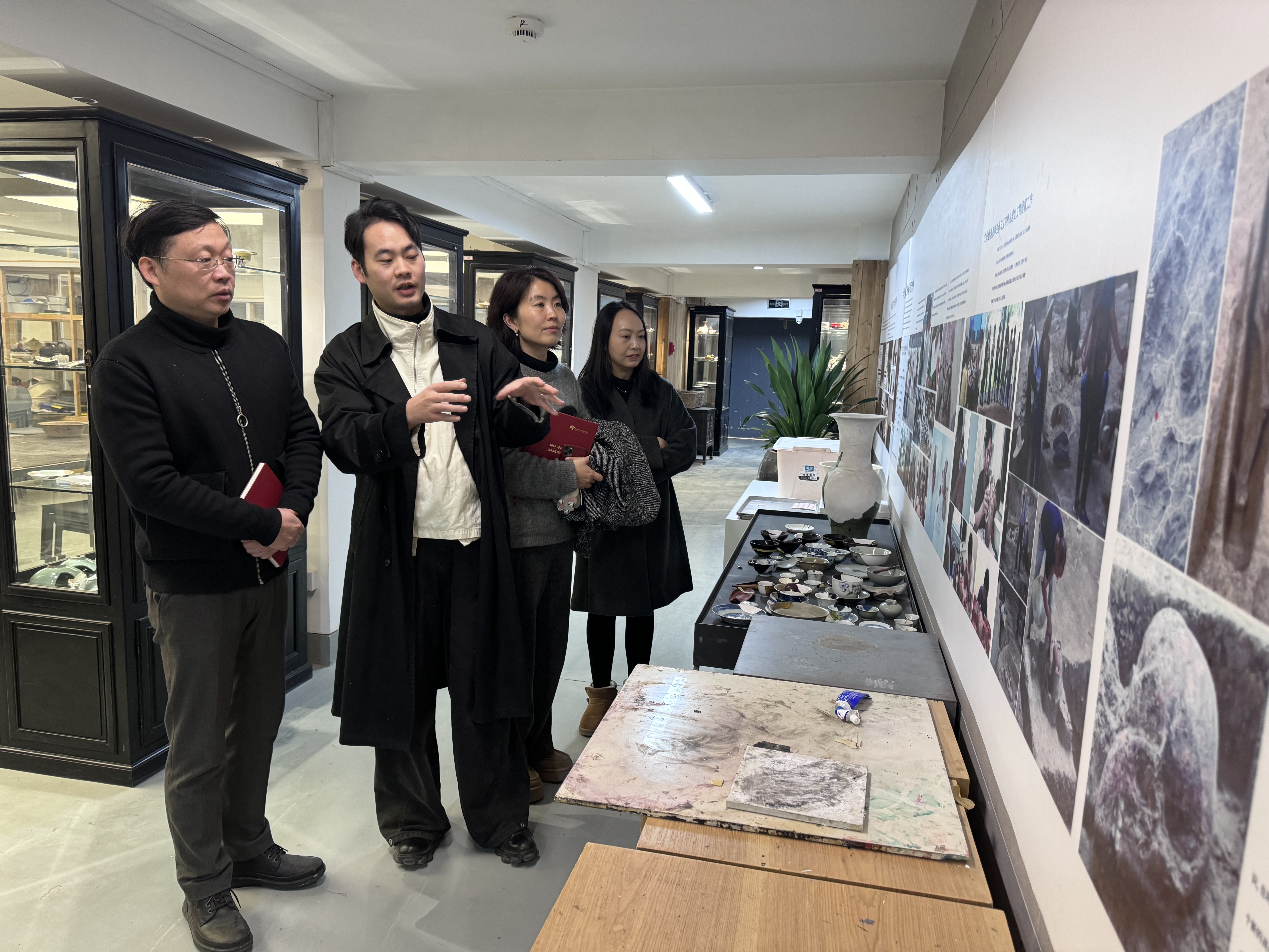 当日,张晨昕一行走访了古陶瓷修复实训室和陶艺基础与修补实训室,近距离观摩了珍贵文物的修复过程,详细了解工艺流程,并见证了修复完成的文物成果和优秀青瓷作品。因此,对学校实训条件和师资力量有了更深刻的了解,对未来开展深度合作充满了信心。