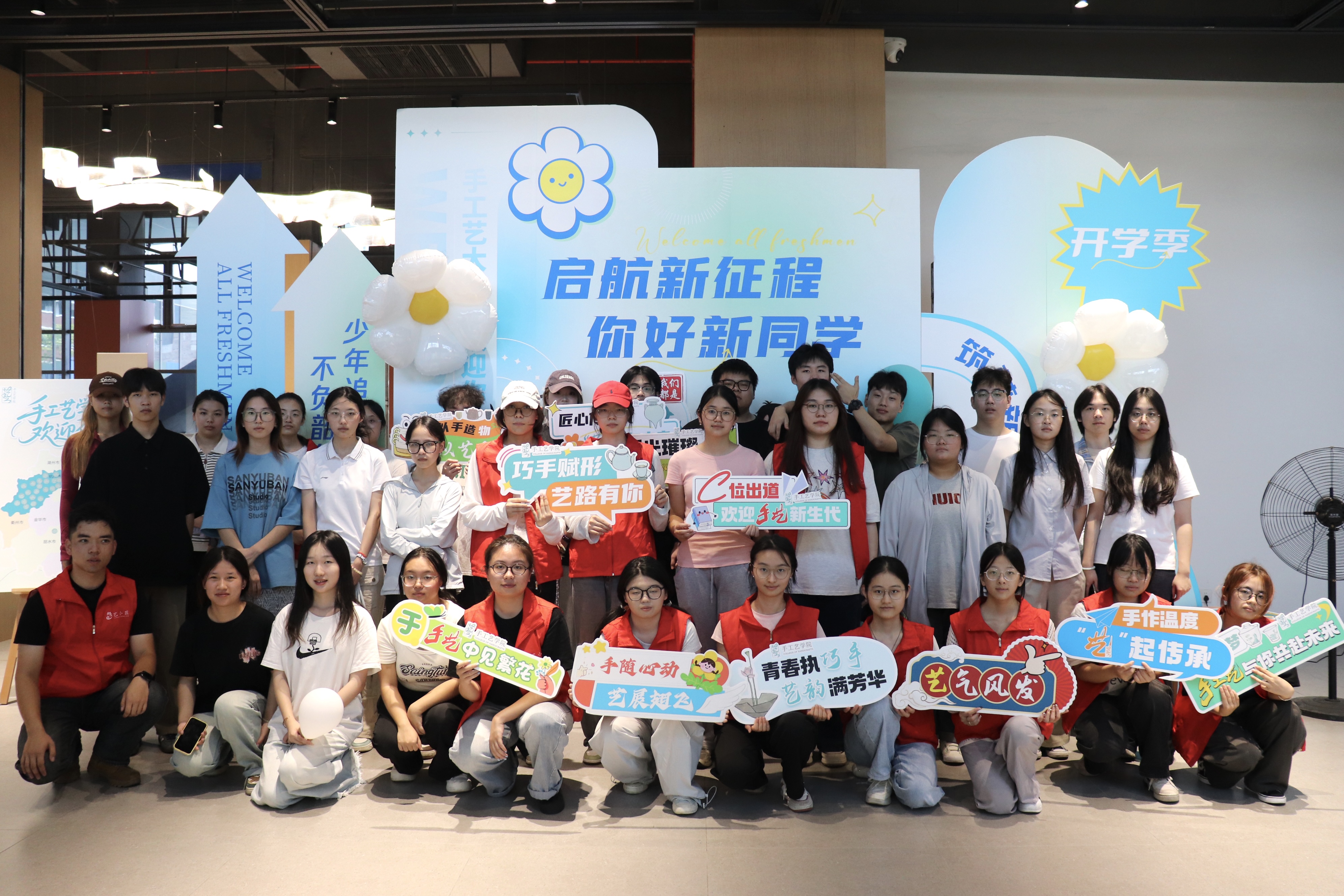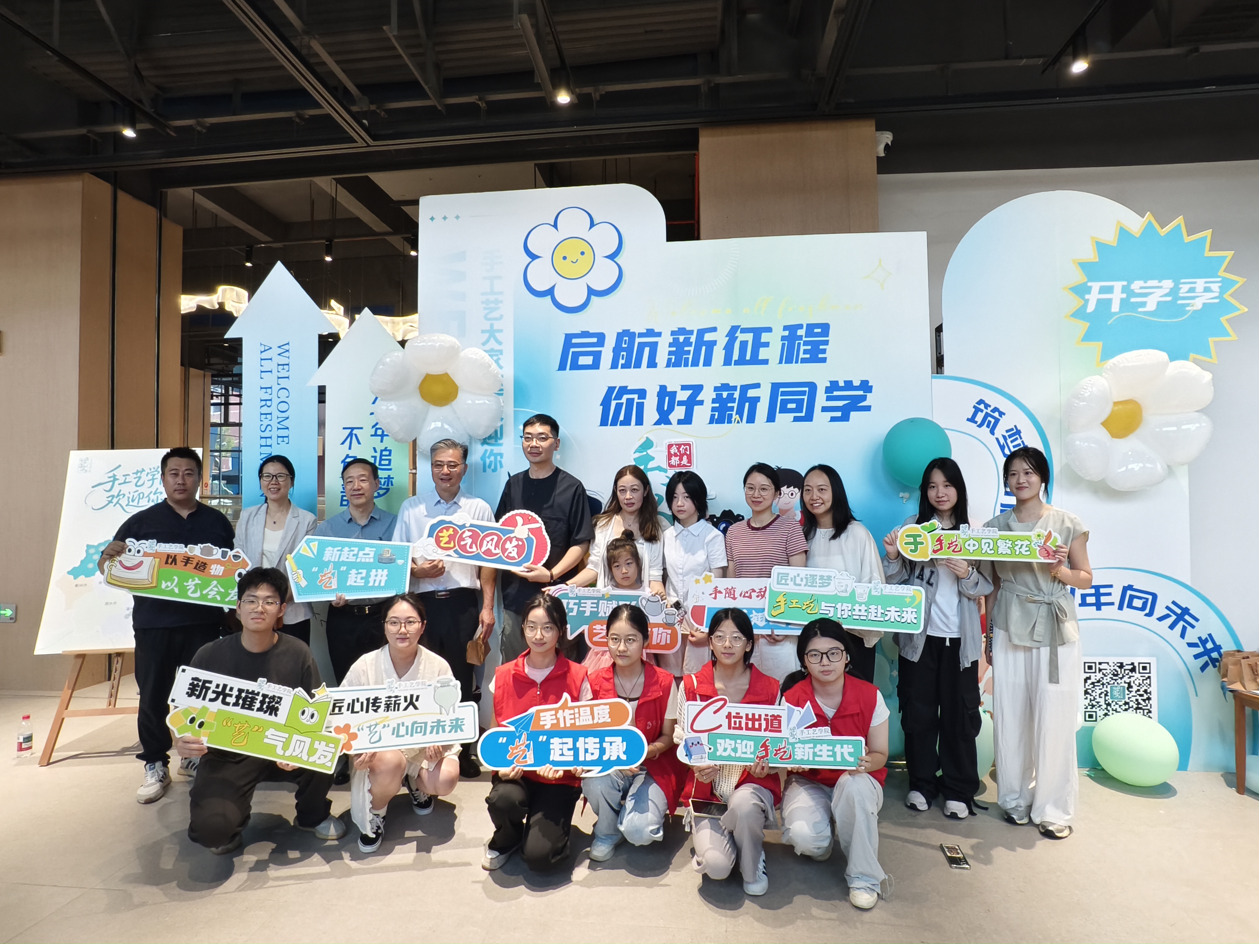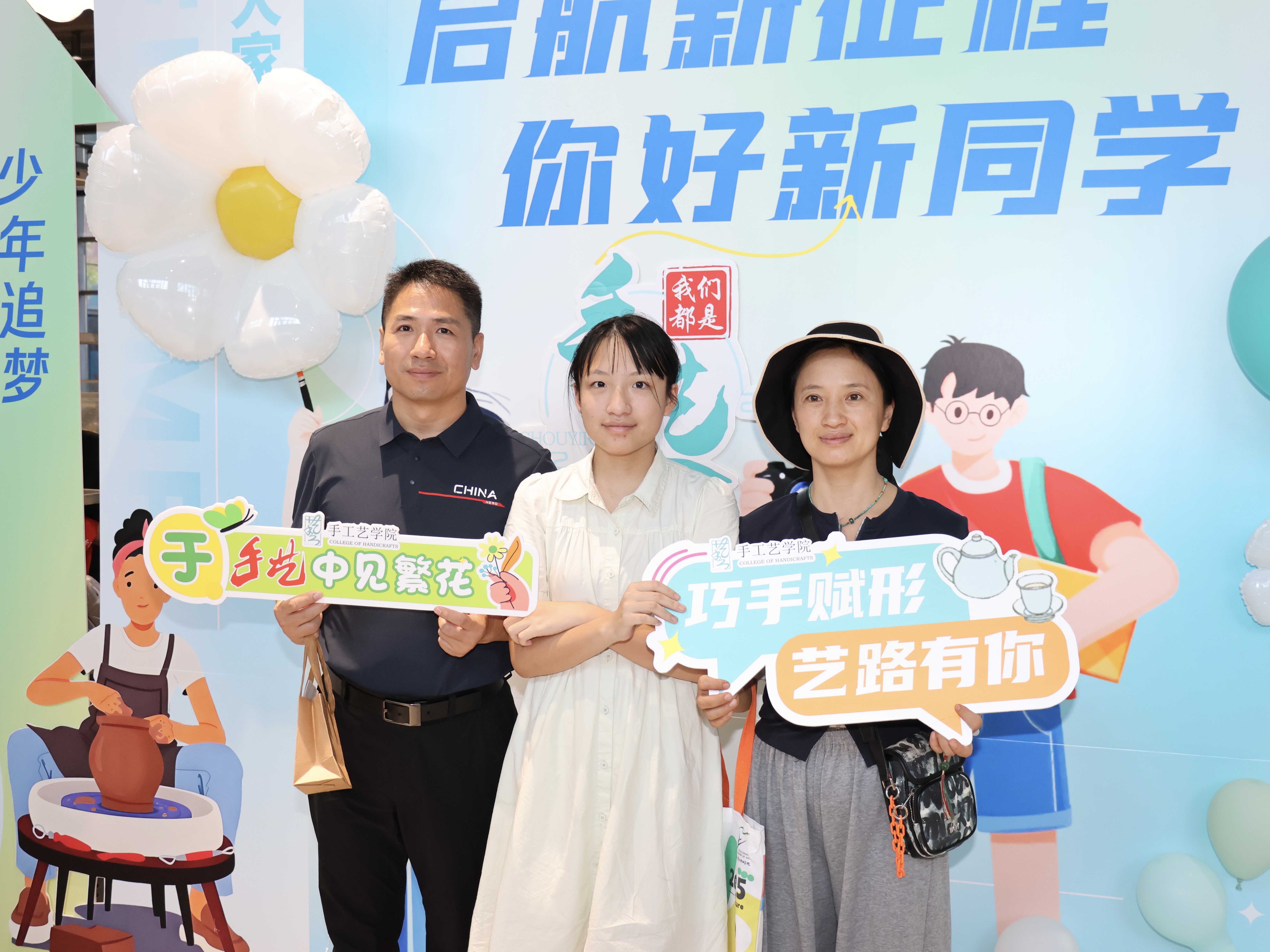 手工艺学院团总支学生会迎新工作组,积极组织“艺小匠”志愿者们,以饱满的热情迎接每位新生,协助完成报到流程。特色喷绘、手持牌和互动kt板,拉满迎新氛围。“我是手艺人”的迎新手作大礼包,更是将“巧艺传承,匠心筑梦”的初心传递,让新生刚进校园就感受到家的温暖。