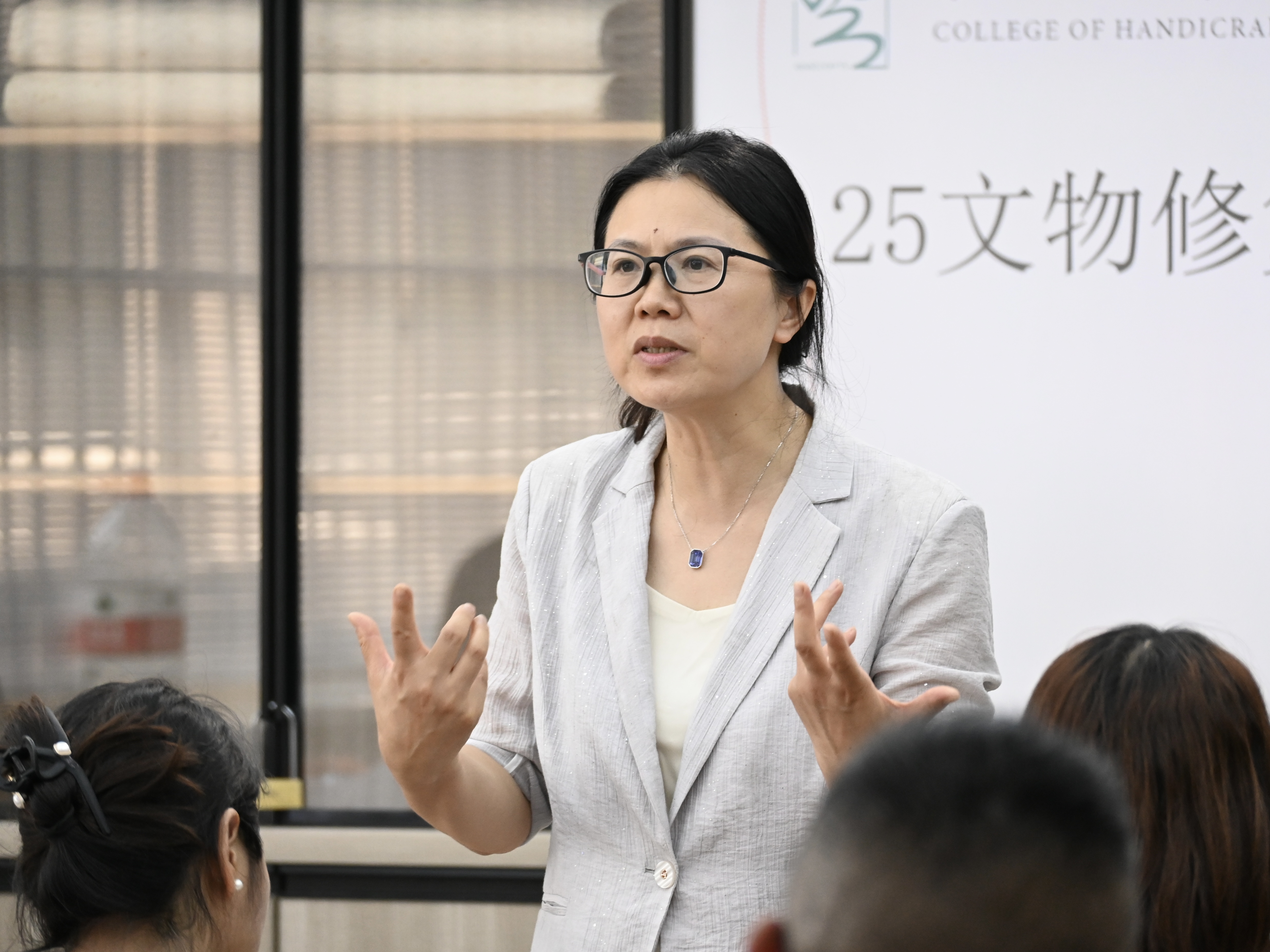 为加强家校联动,帮助家长明晰学院育人环境与学生培养方案,当天下午,手工艺学院召开2025级文物一贯班新生家长会。手工艺学院领导班子、辅导员、新生班主任、班助、文物修复与保护教研室教师团队和全体新生家长共同参会,会议由党总支副书记陈琳主持。