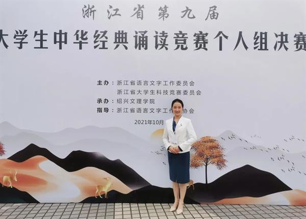 10月17日,浙江省第九届大学生经典诵读竞赛决赛在绍兴文理学院圆满落幕。基础教学部教学团队带领的浙江艺术职业学院代表队表现出色,荣获诸多奖项。其中,戏曲学院2017级越剧一贯班学生张宁在本次比赛中获个人组一等奖。