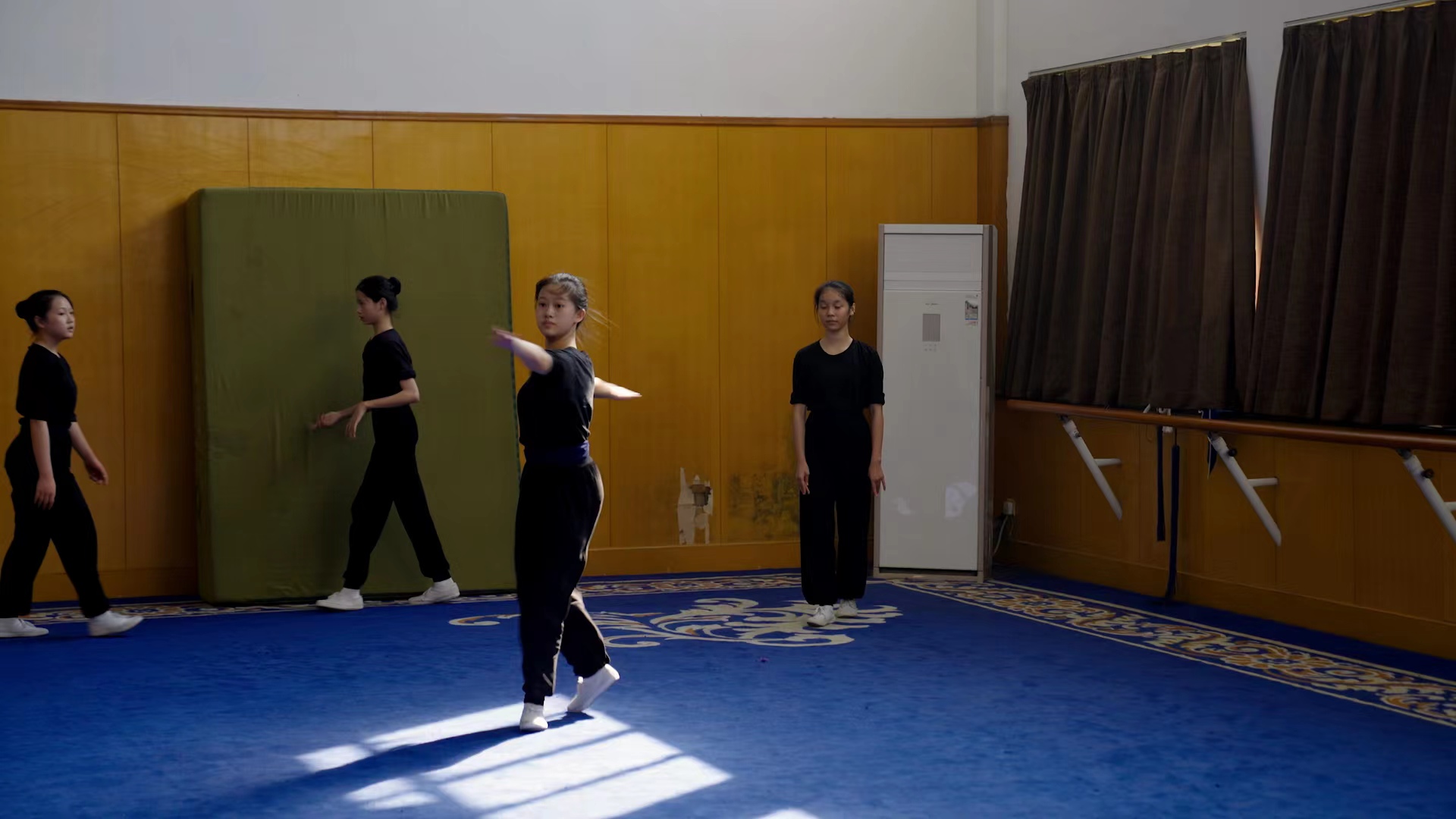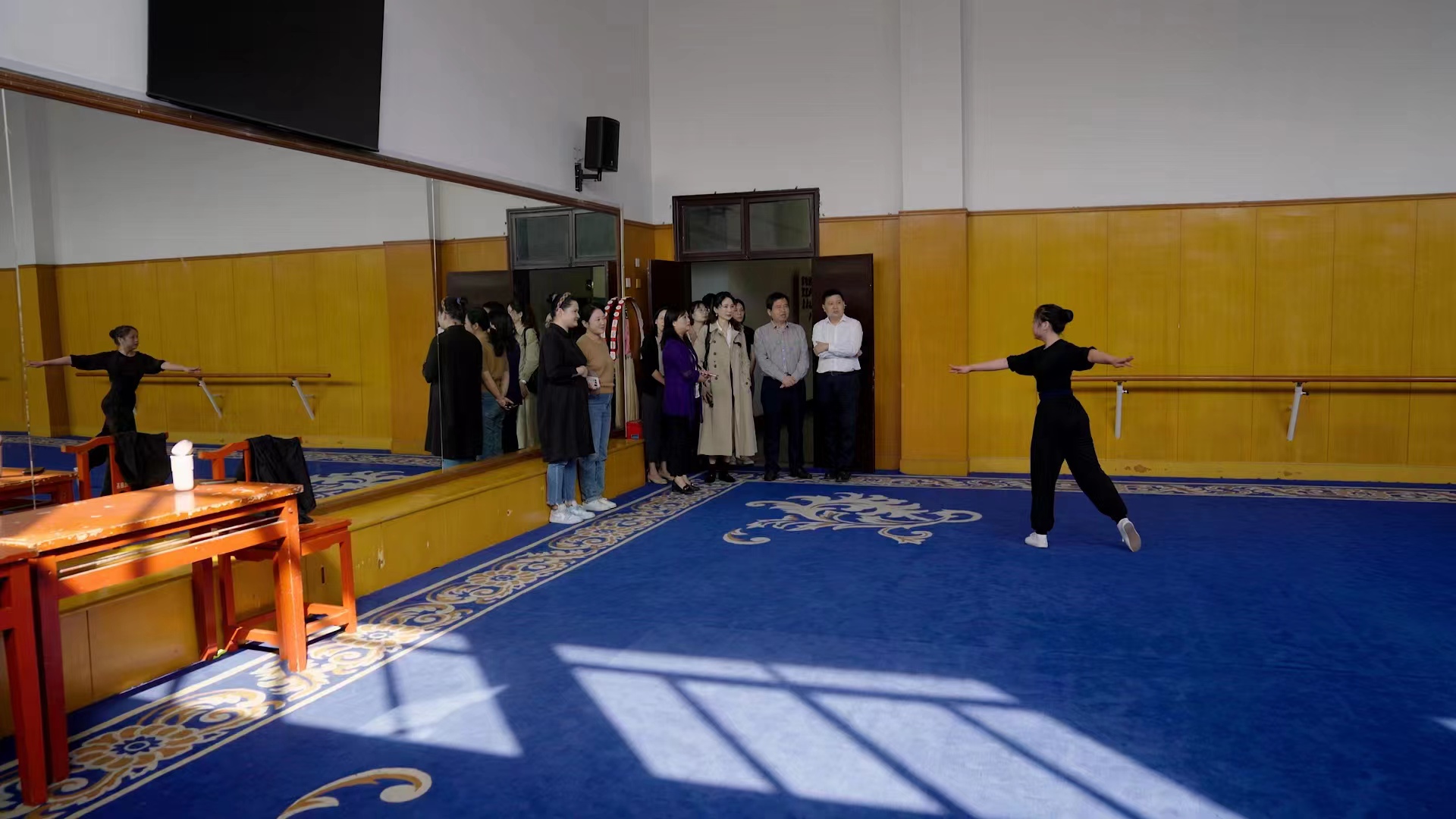 胡一来、陈燕妮一行还观看了学校宣传片,走进戏曲腿功、身段课堂看课听课,近距离感受戏曲专业教学的魅力。
