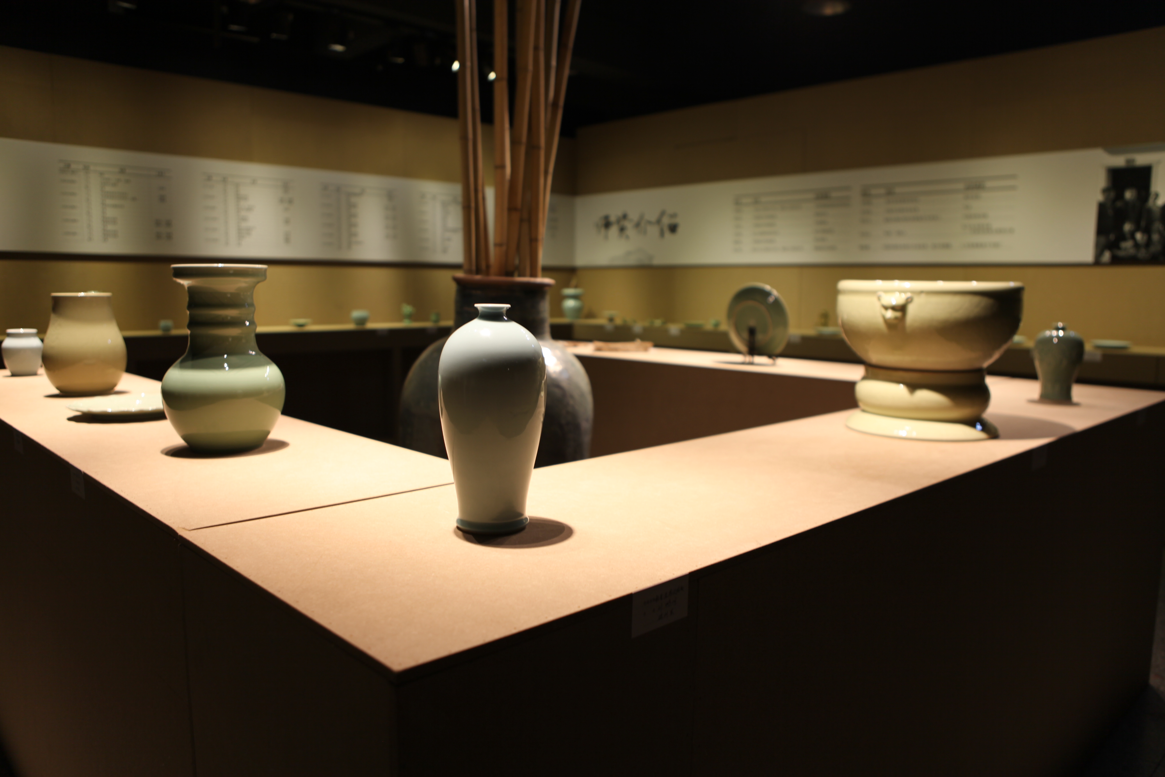 在浙江艺术职业学院4号楼1楼,有一场名为“埏土为器”展览正在展出,雅致的青瓷梅瓶、青瓷羊头尊等青瓷器皿,精致的青瓷摆件和颇具趣味的各式青瓷茶具、餐饮器,共100余件青瓷作品。这些都是来自五湖四海的非遗传承人学员们的作品。