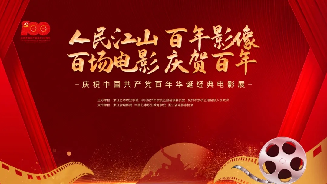 人民江山,百年影像,百场电影,庆贺百年。