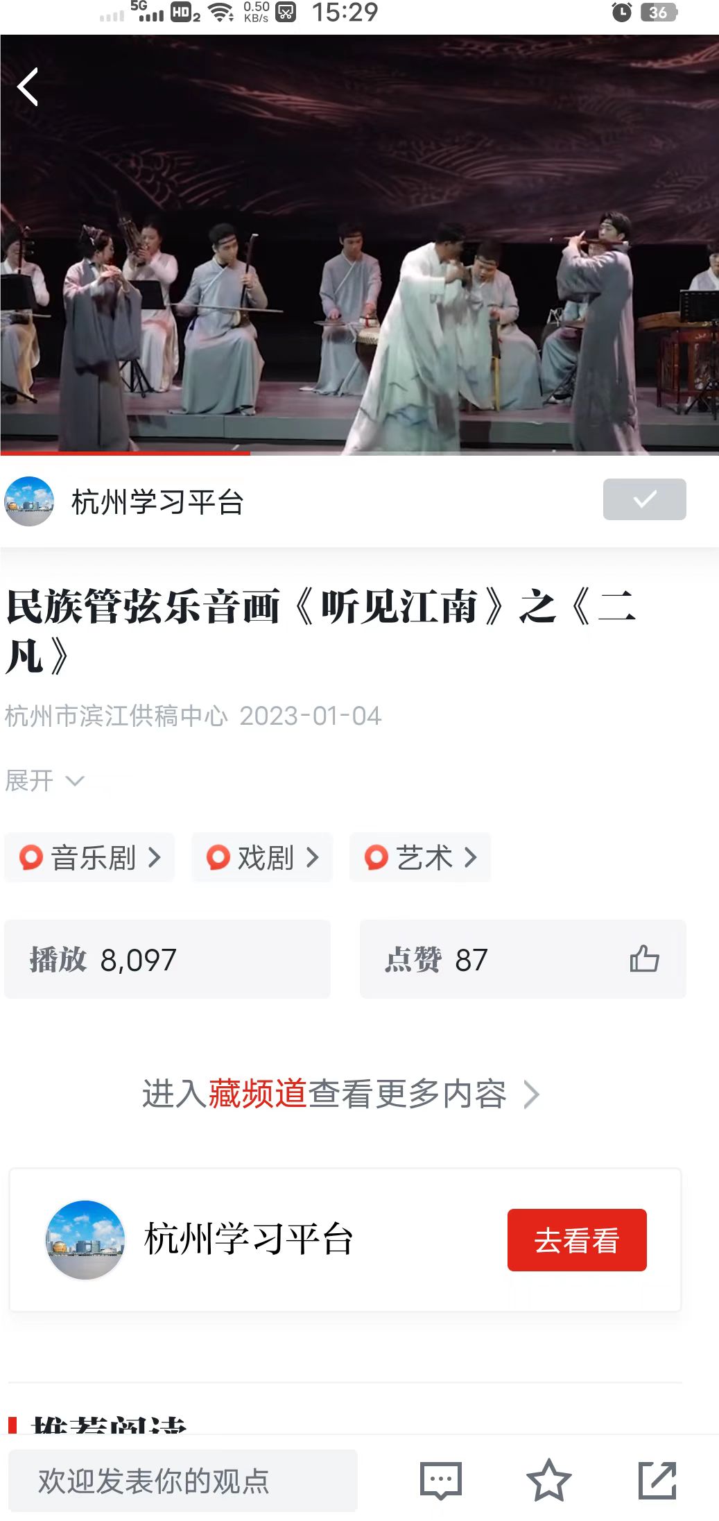 学习强国全国平台:民族管弦乐音画《听见江南》之《二凡》