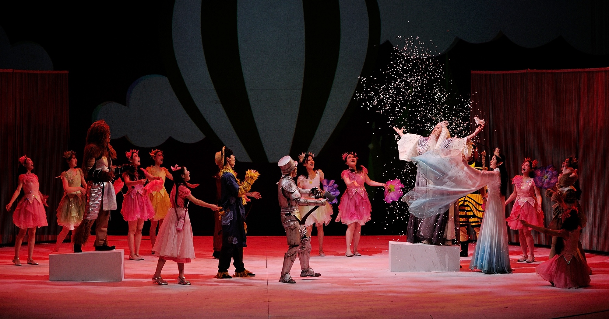 这是一场关于爱、勇气与梦想的奇妙旅行,也是演艺与教育学院表演艺术专业的一次大胆尝试。本剧主创全部来自学校各二级学院,在演艺与教育学院、设计学院、音乐学院、教学实践中心等部门通力合作下,组建了涵盖舞美设计、灯光、服装、化妆、作曲、音响、道具、多媒体等创作团队。