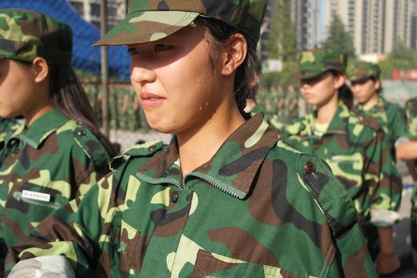 正步定位真的很累人,但尽管已经面目通红,头昏脑胀,我们依然不能放下抬起的腿,因为我们是不屈不挠的90后,体内有比烈阳还要火热的鲜血在流淌!