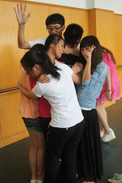 “一个也不能少”,这个心理小游戏的游戏规则是事先在地上铺一张报纸,要求6个同学都要踩在上面,不能漏掉任何一个人。游戏活动期间,笑声不断,精彩不断。大家游戏时欢快的表情,似乎都忘记了白天疲劳的训练。