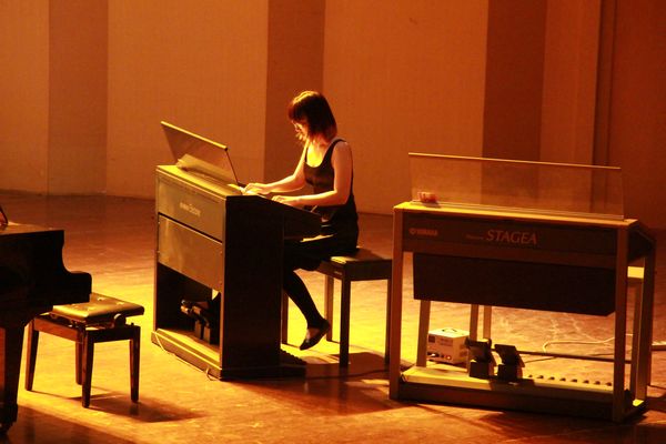 今晚的演奏会以钢琴和双排键电子琴两种乐器为主,展现了一场别开生面的演奏。演奏曲目主要分为现代曲和古典曲两类,部分曲目由专业老师亲自改编,乐曲弹奏的风格多样,已拓展到独奏风格、二重奏、三重奏。让观众感受多样弹奏风格不同魅力的同时,也给观众带来不少的新鲜感,从侧面表现出弹奏风格教学的与时俱进,不断创新。无论是钢琴曲独奏《云雀》,双排键演奏《古巴》,还是双钢琴演奏《一步之遥》等节目,演奏者用扎实的演奏功底和富有激情的表现力,感染在场的每一位观众,获得掌声连连。其中,双排键演奏《古巴》,由双排键与钢琴共同演奏,趣味性及大众可接受性相统一,为观众们带来了耳目一新的新体验;三重奏《自由探戈》,由双排键与钢琴共同演奏,三位演奏者用其精湛、娴熟的演奏技巧与默契的配合,展现了非常强烈的断奏式演奏。