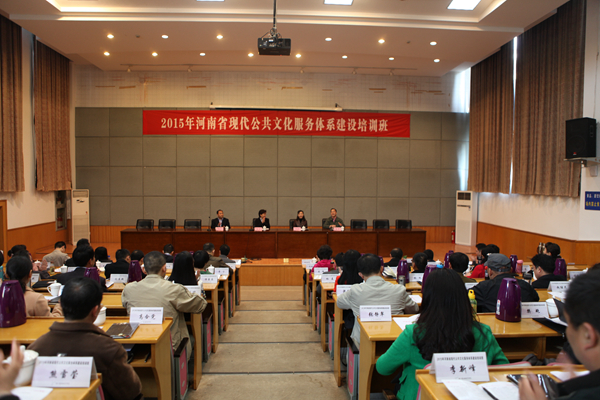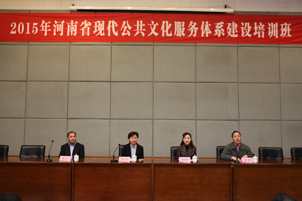 受文化部公共文化司、河南省文化厅委托,4月12日至17日,2015年河南省现代公共文化服务体系建设培训班在全国文化干部培训基地浙江艺术职业学院举行。河南省文化厅副厅长康洁、浙江艺术职业学院党委副书记黄杭娟、河南省文化厅公共文化处处长崔玉山参加开班仪式并讲话,来自河南省各地、市、县文广新局相关领导58人参加了本次培训。