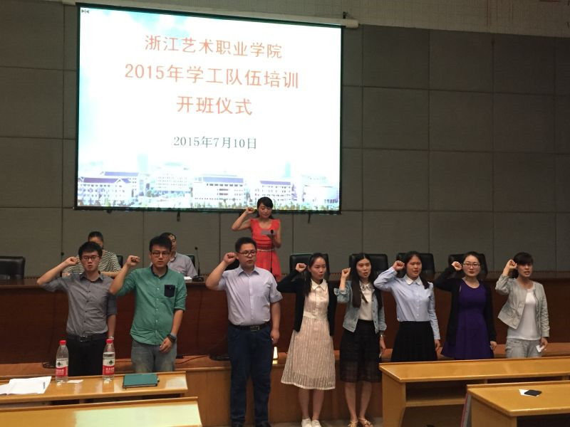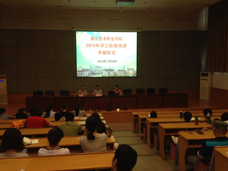 7月10日上午,浙江艺术职业学院在图信中心一楼报告厅举行2015年学工队伍培训开班仪式。院党委委员、纪委书记夏开堂,各系党总支副书记,学工部教职工,全体辅导员和部分班主任等近百人参加仪式。