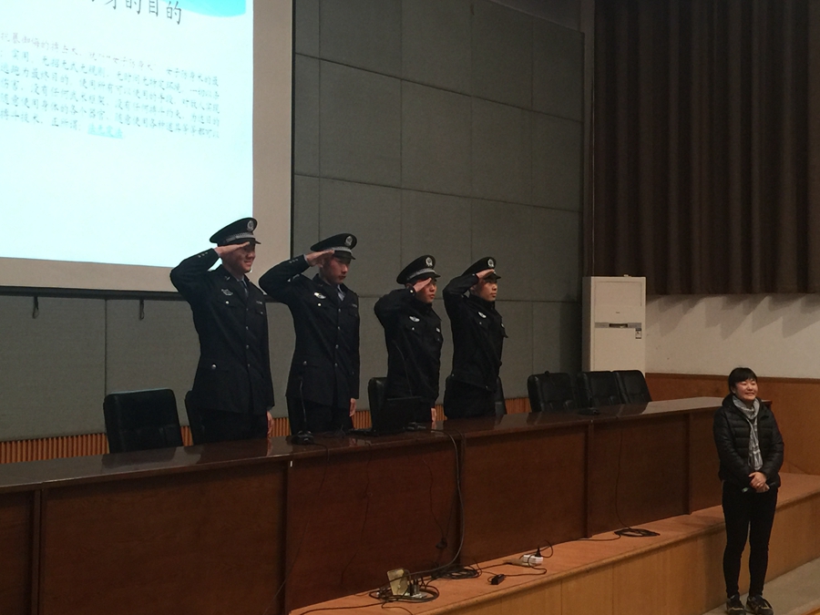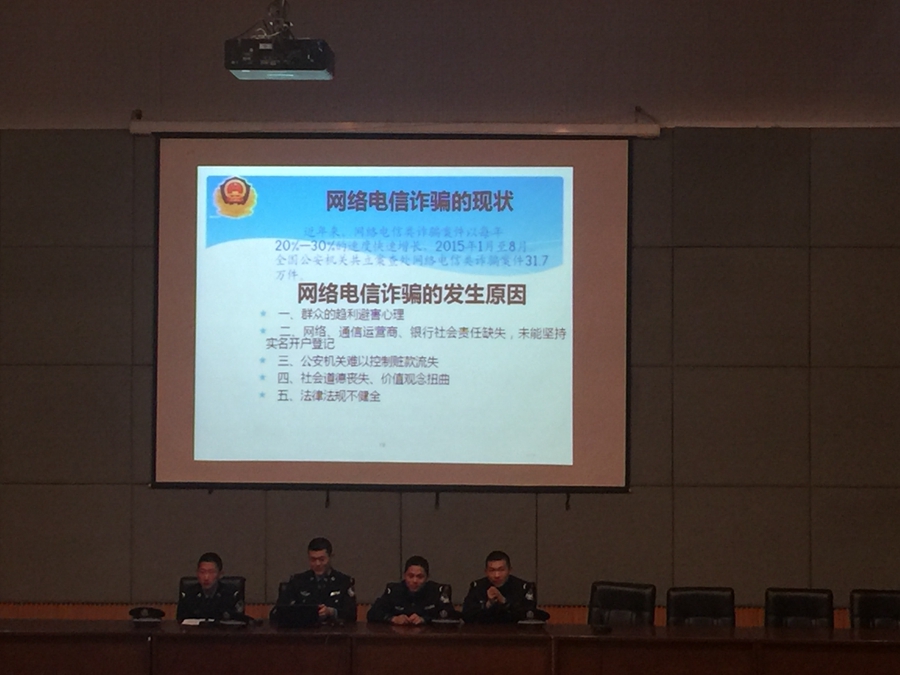 应舞蹈系之邀,3月15日晚,浙江警察学院四名学员前往图信报告厅为全体中专段学生举办《“免疫”诈骗》安全知识讲座。