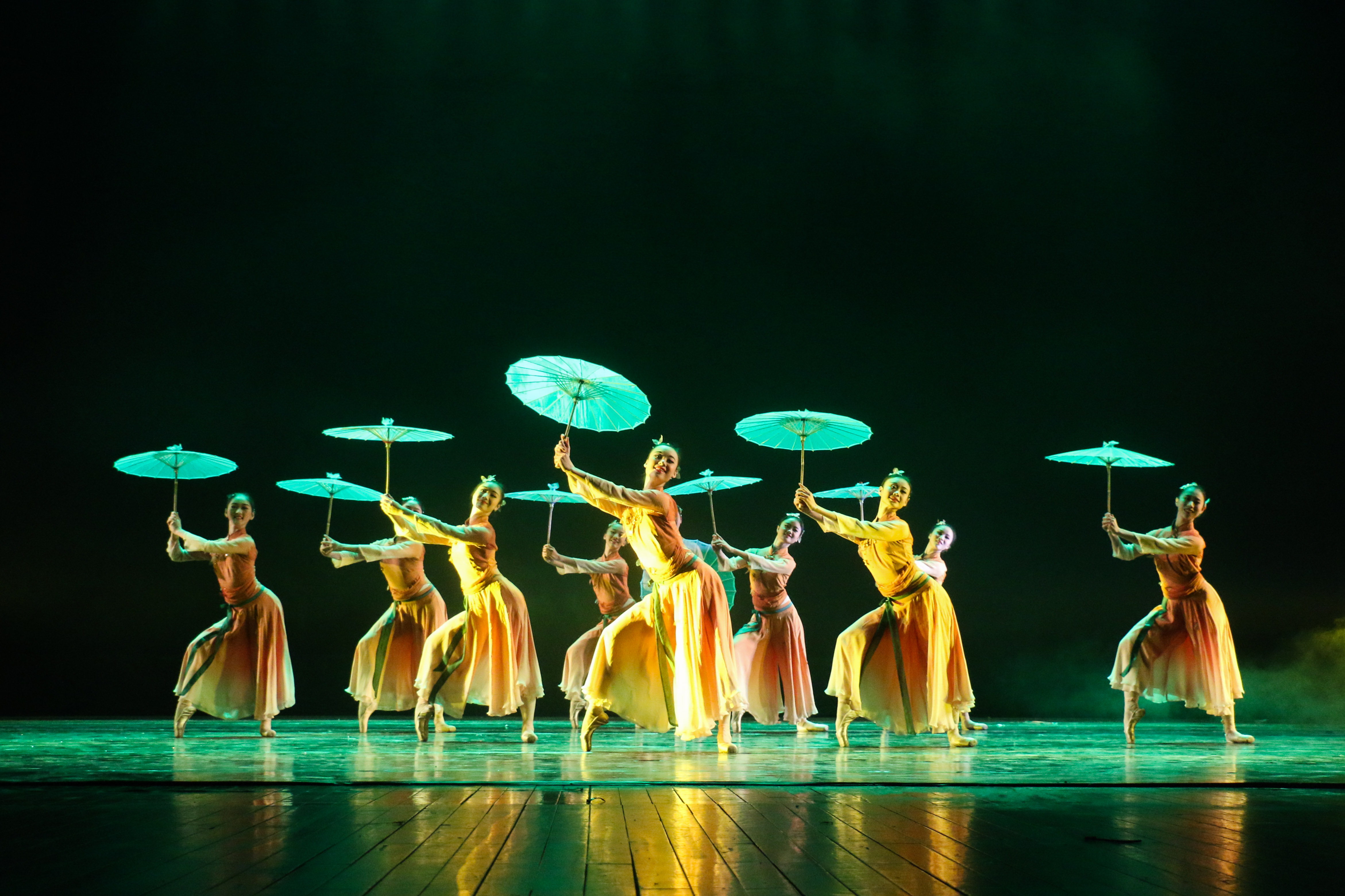 展演通过学习剧目、新苗培养、校企合作、创作剧目四个板块,全面展现了舞蹈系学子们的风采。《 摇篮》:他们最初像婴儿一样,在舞蹈系这个摇篮里茁壮成长,是老师们的精心哺育,帮他们写下美丽的篇章。看!他们稚嫩的笑颜是多么令人难忘。《顶碗》:一群来自舞蹈系14级一贯制班的姑娘们,顶着瓷碗,带着蒙古族特有的热情,伴随着马头琴悠扬的声音,给我们送来了草原的祝福。《吉祥树》:不同于女孩柔情似水的三道弯,傣族汉子带来的,是如跳跃火苗般的三道弯。浓郁的民族风情,充满神秘色彩;古老的东方文明,赐给他们的是刚毅与虔诚,祈祷着来年的吉祥与幸福。《 新苗培养》:寒来暑往,他们像一株株新苗,在这里播种理想,耕耘生活,收获硕果。次次历练,是为了对明天更加坚定向往,是成功路上的风景。《戈壁沙丘》:草原是蒙古汉子最好兄弟,捧着酒壶,在自己最熟悉的地盘上尽情撒野,是一件多么酣畅淋漓的事情!即使是沙漠与戈壁也丝毫不能阻挡他们前行的步伐,家,就内心深处最真正的渴望。《廊桥印象》:柔情的女子与辛勤的男子,男子们倾力打造,女子用自己的温柔来为这幅图画添加美好。国家艺术基金资助项目男子群舞《凳之龙》运用缠、拧、倾、绕的传统古典舞动作精髓,展开对龙之形态的动作设计,而后利用长凳进行龙之骨架的构成与变化,传达出中华民族的“龙之骨气”,蕴意深远。《 鼓舞声花》:江南少女的俏丽与花的绽放在舞蹈里相互结合,用阵阵鼓声与舞动的姑娘来表达出江南的秀美。《雨后梧桐》:撑着油纸伞的女孩,踮着脚尖站在梧桐树下,等待着那个如她般美好的人物出现……《古舞新韵》:绚丽的技巧和古典的韵味相交融,给我们带来了曼妙的舞姿。