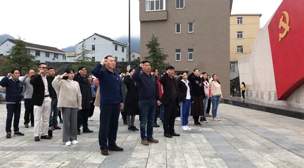 在位于杨家村北山上的亭旁起义纪念碑前,党员师生肃穆站立,用三鞠躬表达对革命烈士的崇敬之情。在苏维埃政权成立大会旧址原亭旁城隍殿,党员师生认真体会当年亭旁起义的壮烈场景。在亭旁起义纪念馆,党员师生仔细观看陈列室内先烈英勇事迹的介绍,观看电视专题片——《浙江红旗第一飘》,那一张张生动的图片,一段段真实平凡的文字,记录着先烈们不平凡的事迹,令每一位党员的心中涌起无限敬佩之情。 在初心广场,党员师生在雨水的浇灌下,坚定地举起右拳,重温入党誓词,表达了对党的事业奋斗终身的决心。