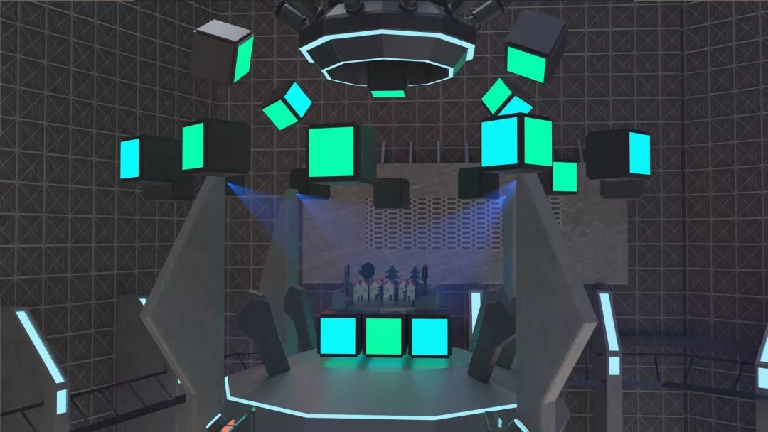 展厅的左右两侧,有两块屏幕,右侧正在展映的作品名称叫《绪》(制作:徐佩波、赵乐维,指导老师:孙煜珑),动画故事讲的是失去家人的博士孤独地生活在一间实验室里,陪伴他的是一个破旧的小机器人,博士意外地发现小机器人芯片记载着他女儿的信息……