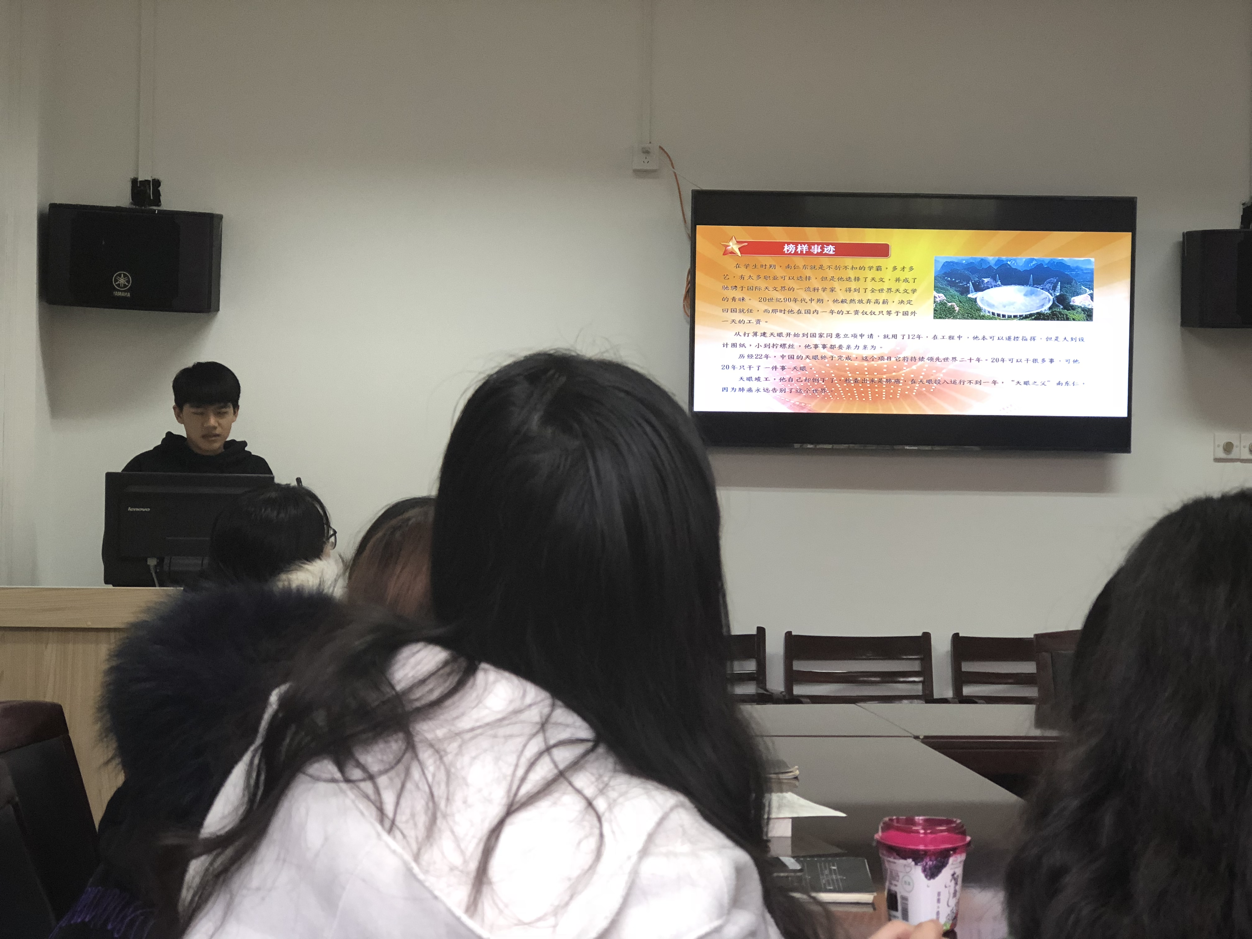 在宣讲的最后,楼烽说,榜样是看得见的力量,榜样的形象最直观,让人看得见、摸得着;榜样的力量最强大,感人肺腑、慑人心魄;榜样的影响最恒久,能够穿越岁月、光照未来。正如习近平总书记所说,一个知识分子,不论在哪个行业、从事什么职业,也不论学历、职称、地位有多高,唯有秉持求真务实精神,才能探究更多未知,才能获得更多真理,也才能为社会做出贡献。